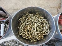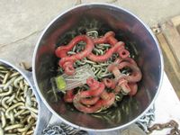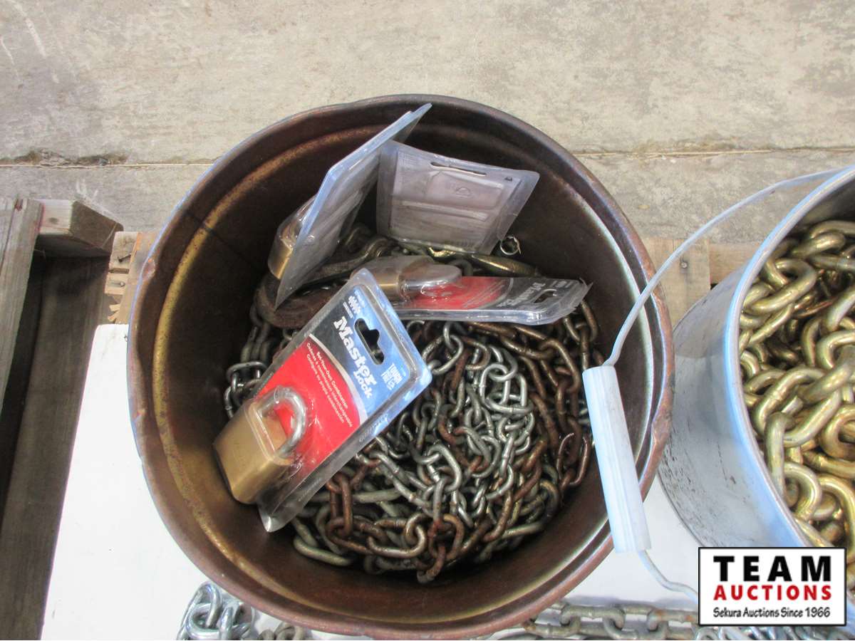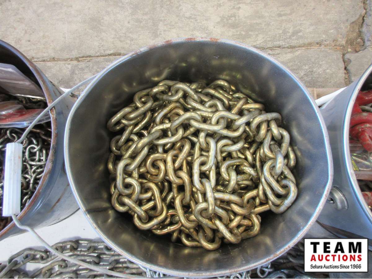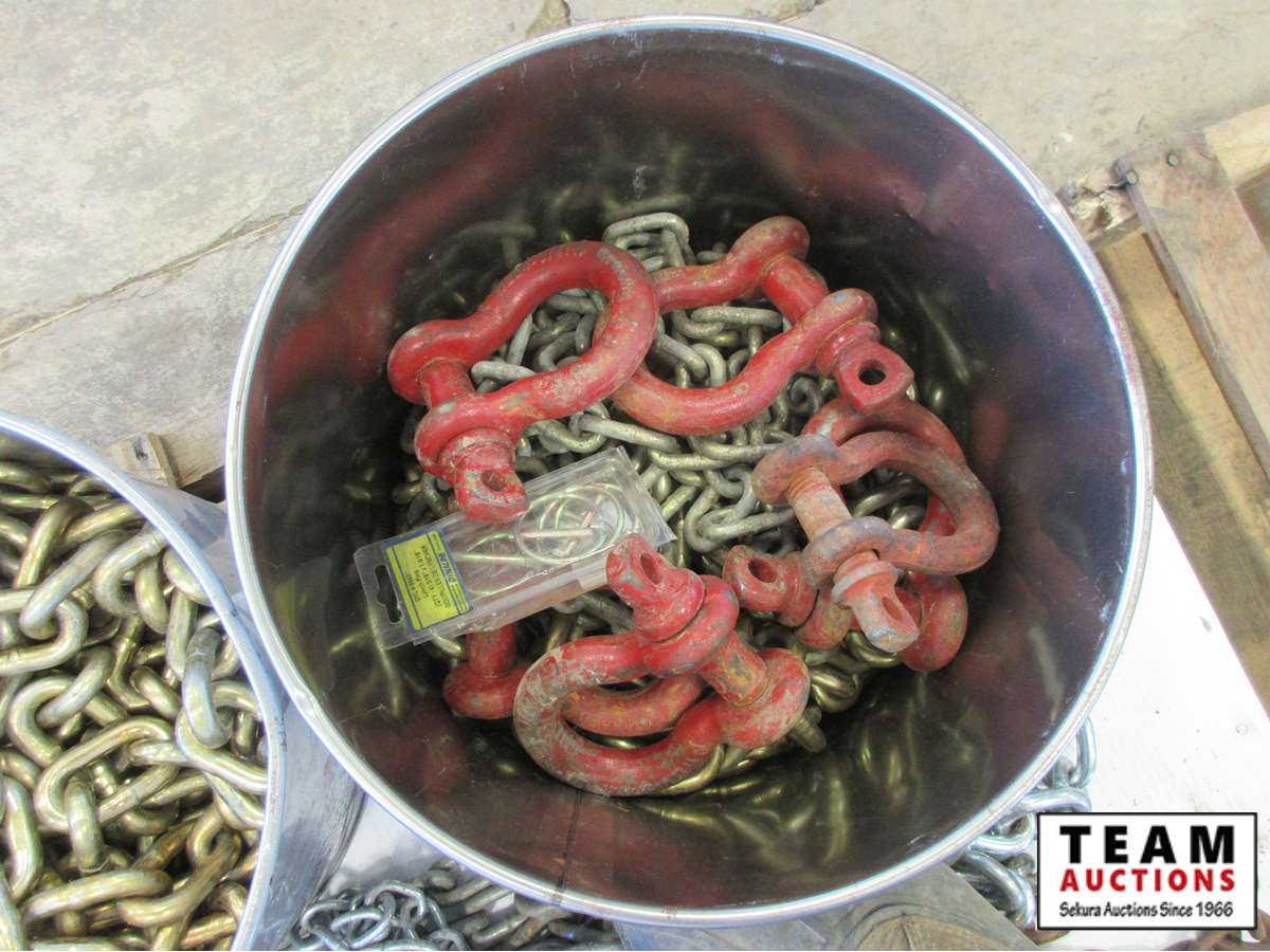 assortment of chains, boomers, cable come-a-long, transport chain, shackles