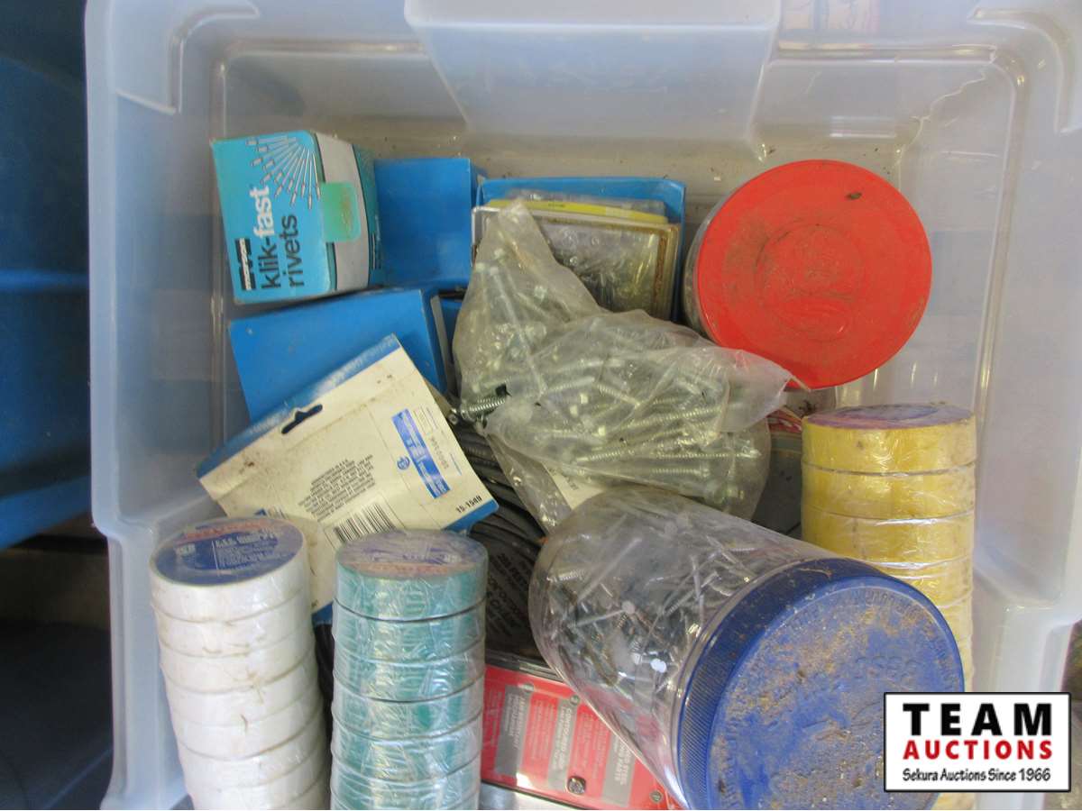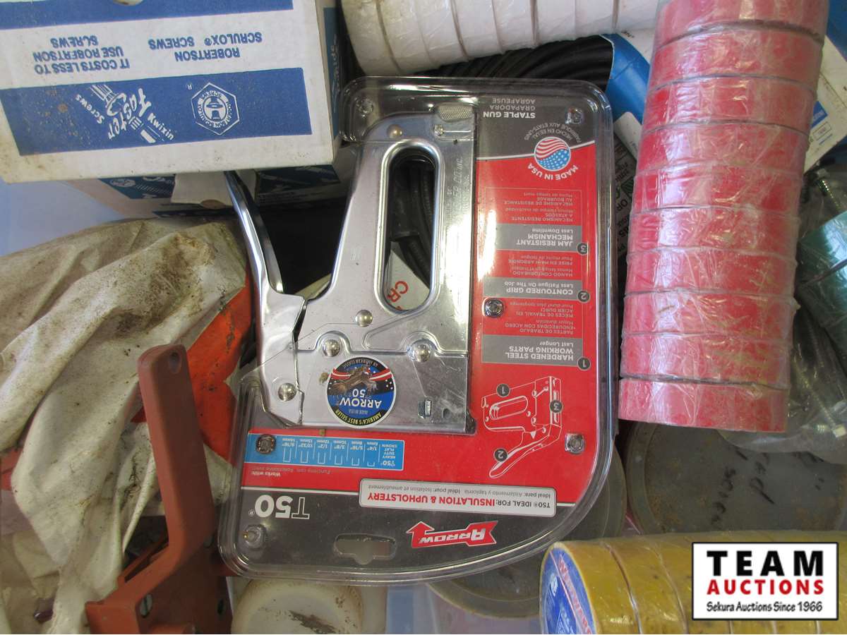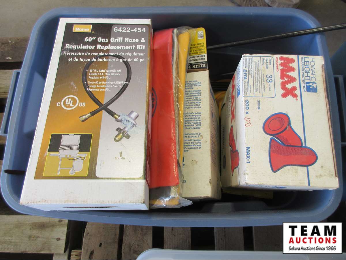 electrical tape, bolts, screws, ear plugs, 60" gas grill hose, power bar, packing tape, ladle & lead stock, sand paper, emery cloth & more