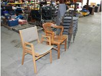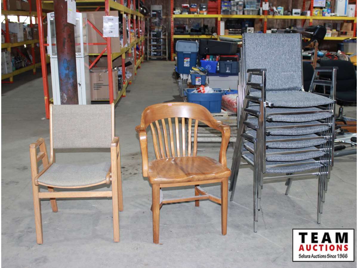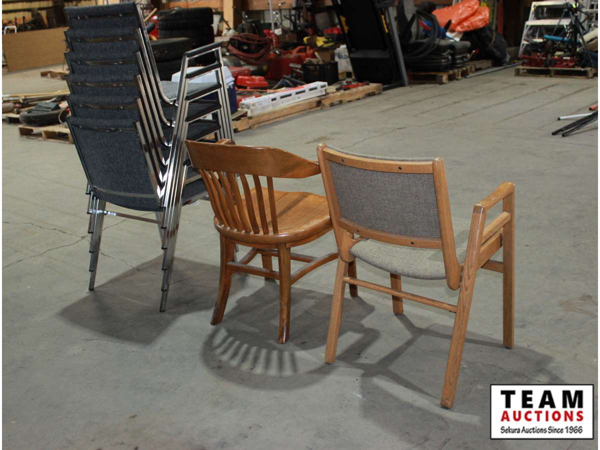 (6) Chrome and fabric stacking office chairs, (2) wood chairs with fabric seat and back