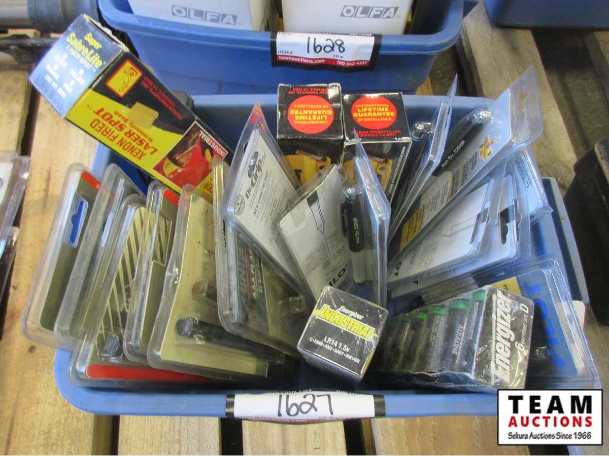 1627 Qty of Flashlights, Batteries & Pens