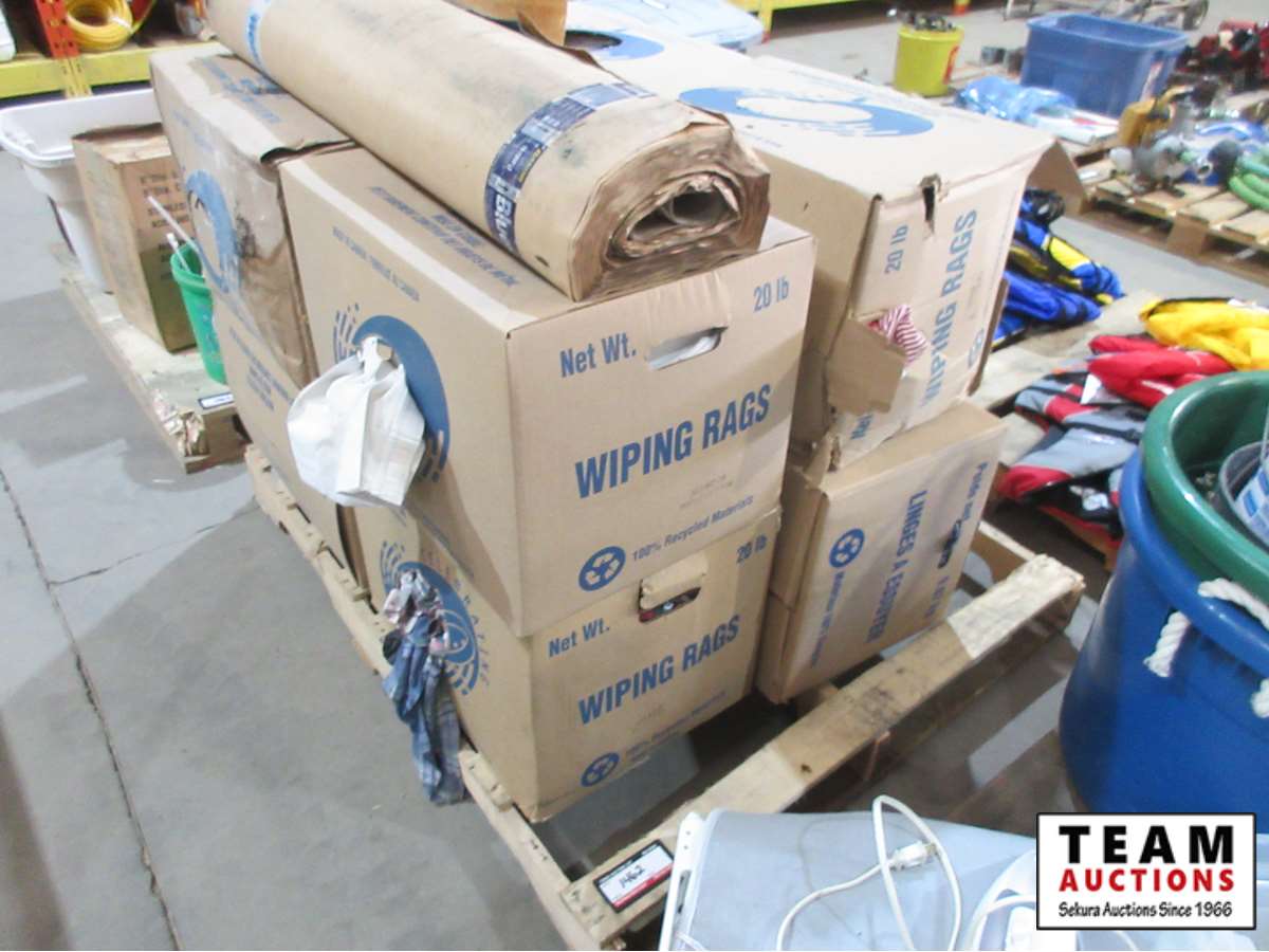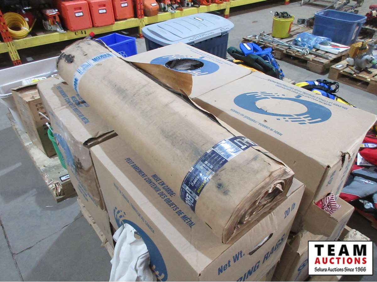 (8) boxes of rags, roll of Blue Sky vapor barrier