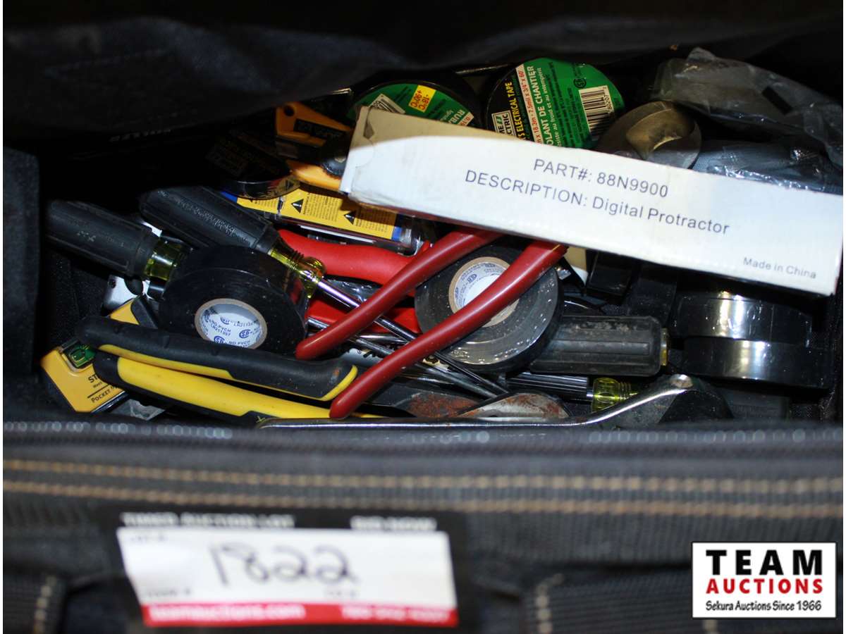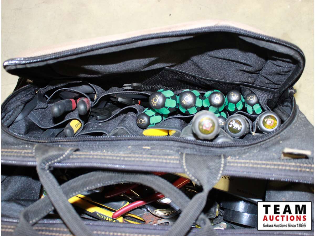 Kunys tool bag w/multiple screwdrivers, tape, pliers, miscellaneous