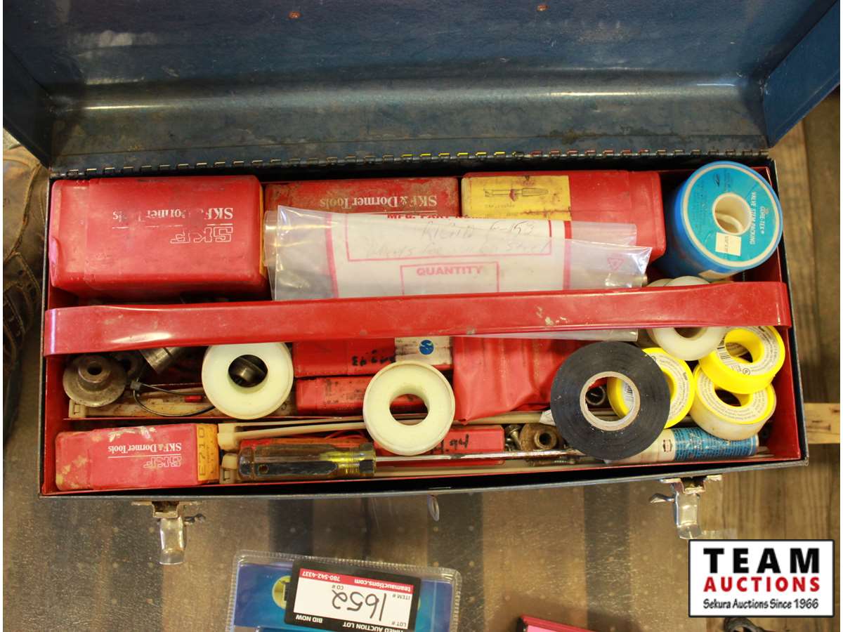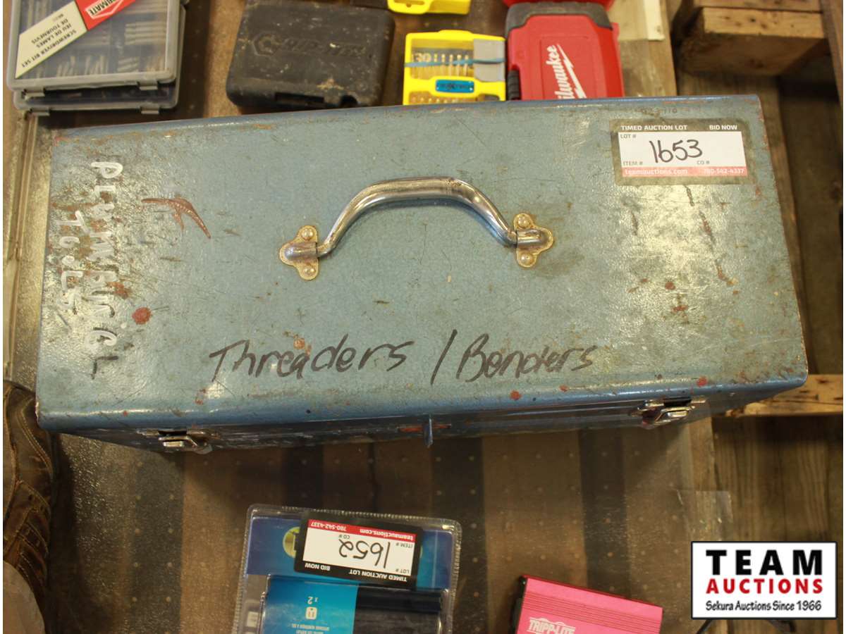 blue toolbox w/threaders & benders, tape