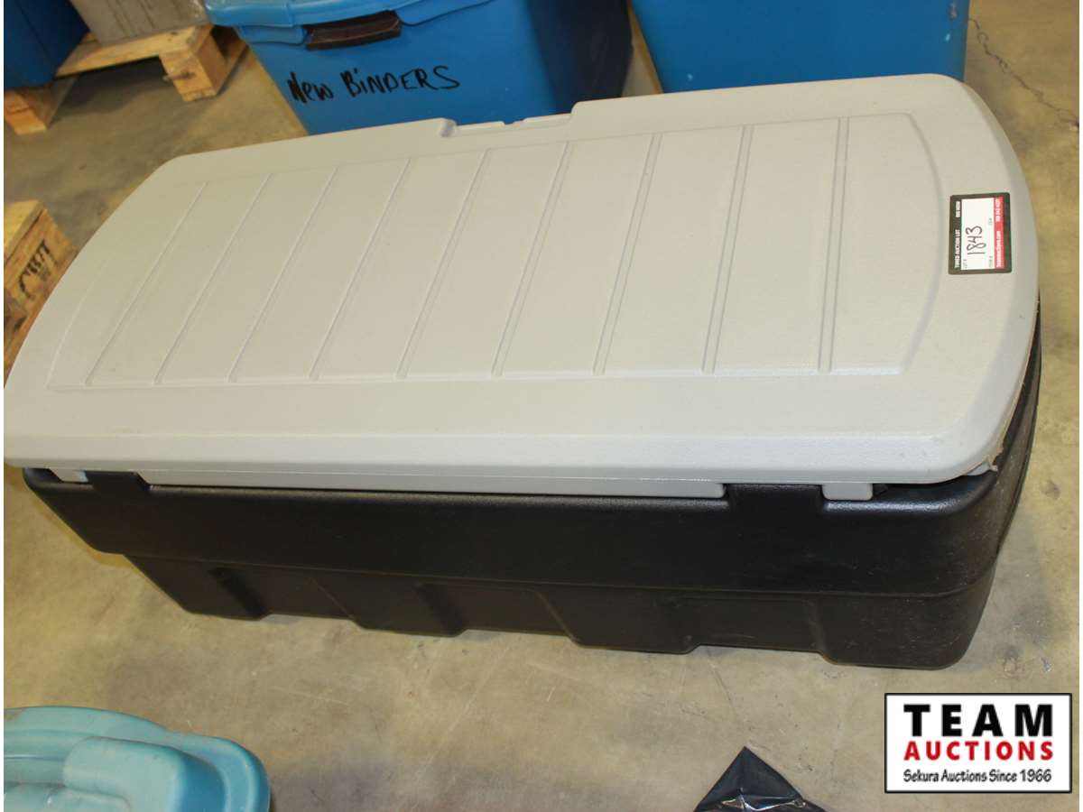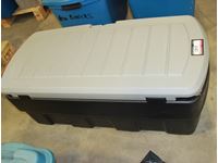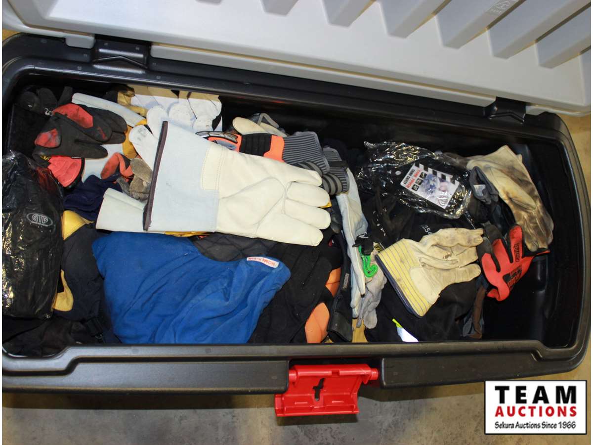 Rubbermaid tote w/grey lid Contains misc gloves, work gloves