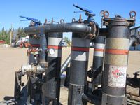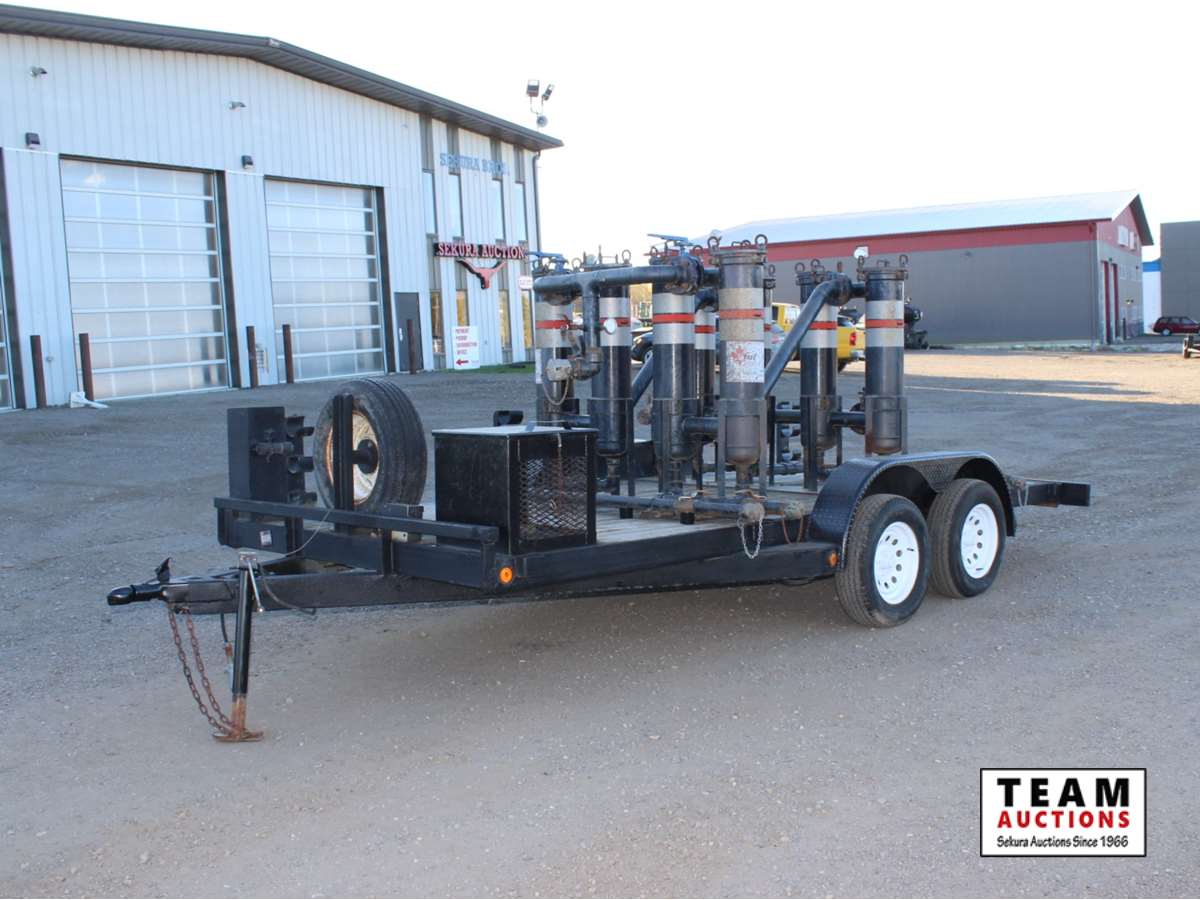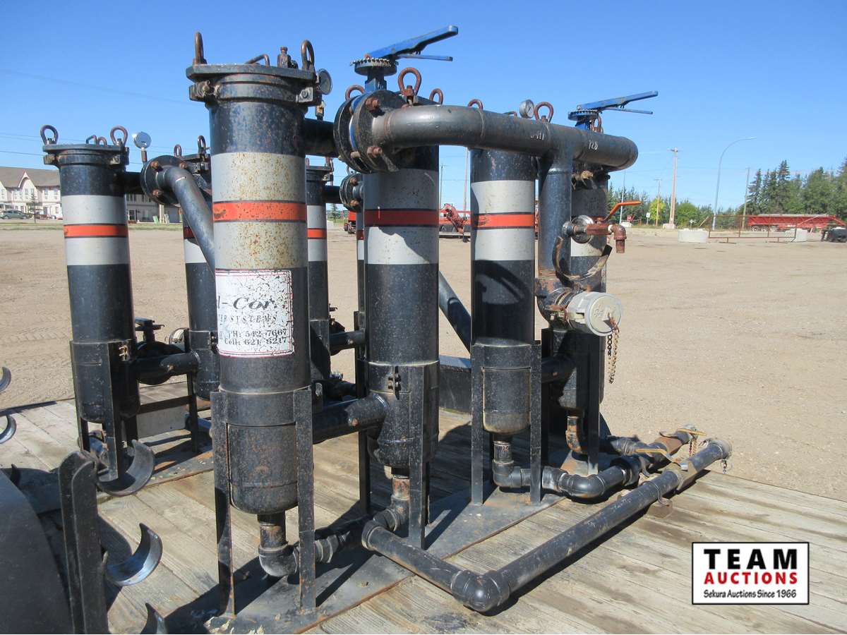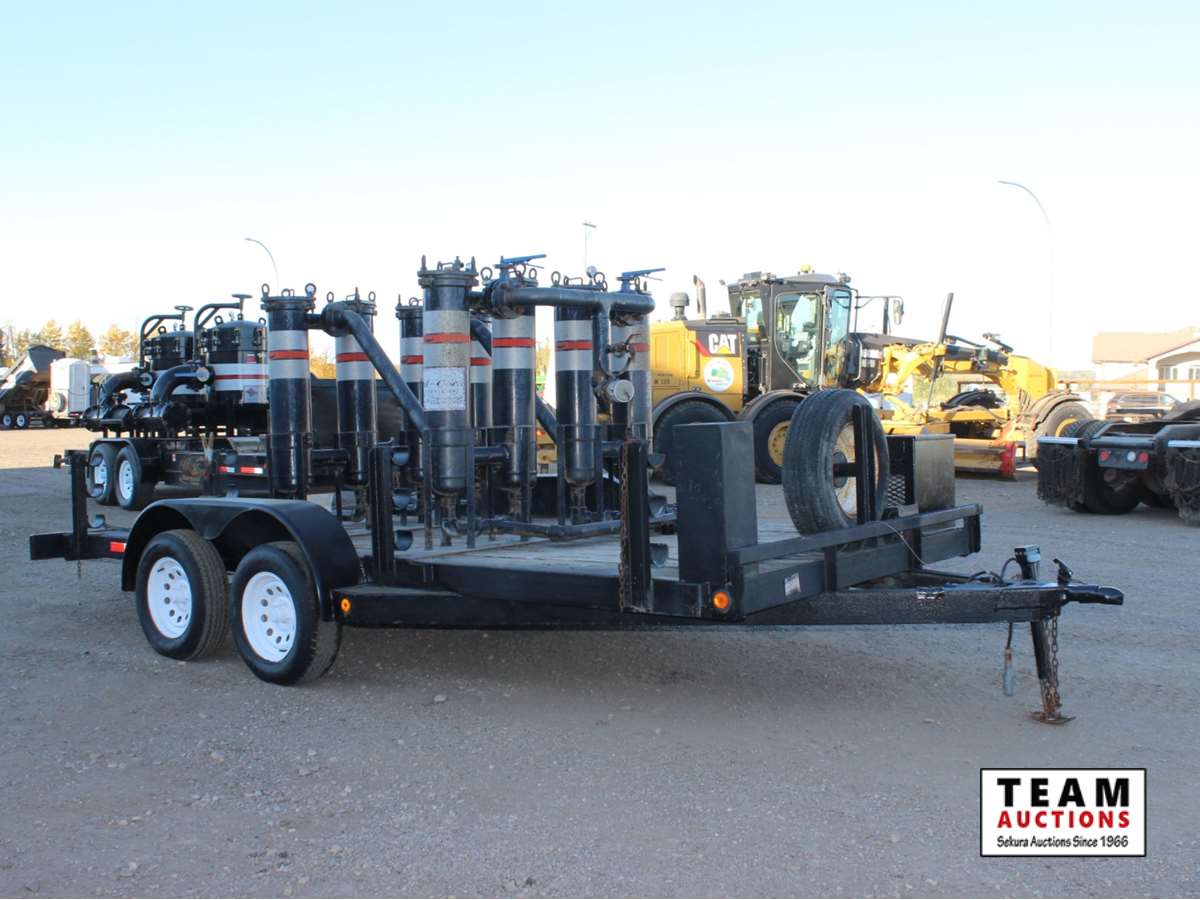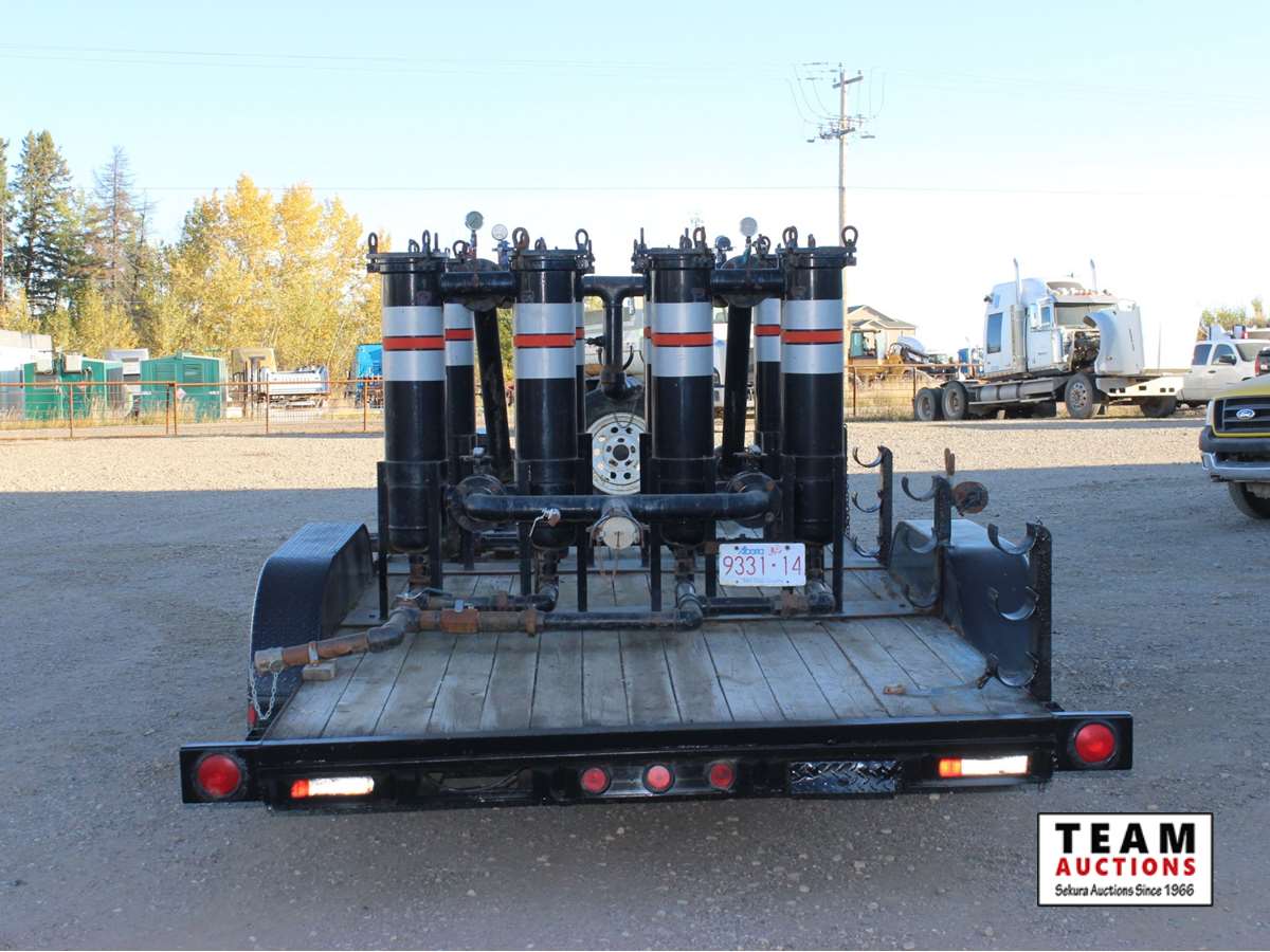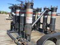 2 stage (8) pot, 3" inlet bag filter unit, 2-3 cubic M per minute flow capacity, designed to filter water, frac oil, glycol, and amine, 3500 lb axles, spring suspension 205/75R116 rubber, spare