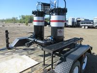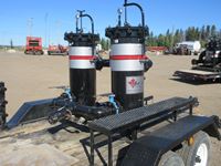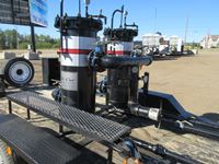 2 stage, 2 pot string woven cartridge filter unit, 2-3 cubic M per minute flow capacity, designed to filter crude oil, water, glycol, amine and frac oil, 3500 lb axles, spring suspension, 205/75R15 rubber, spare