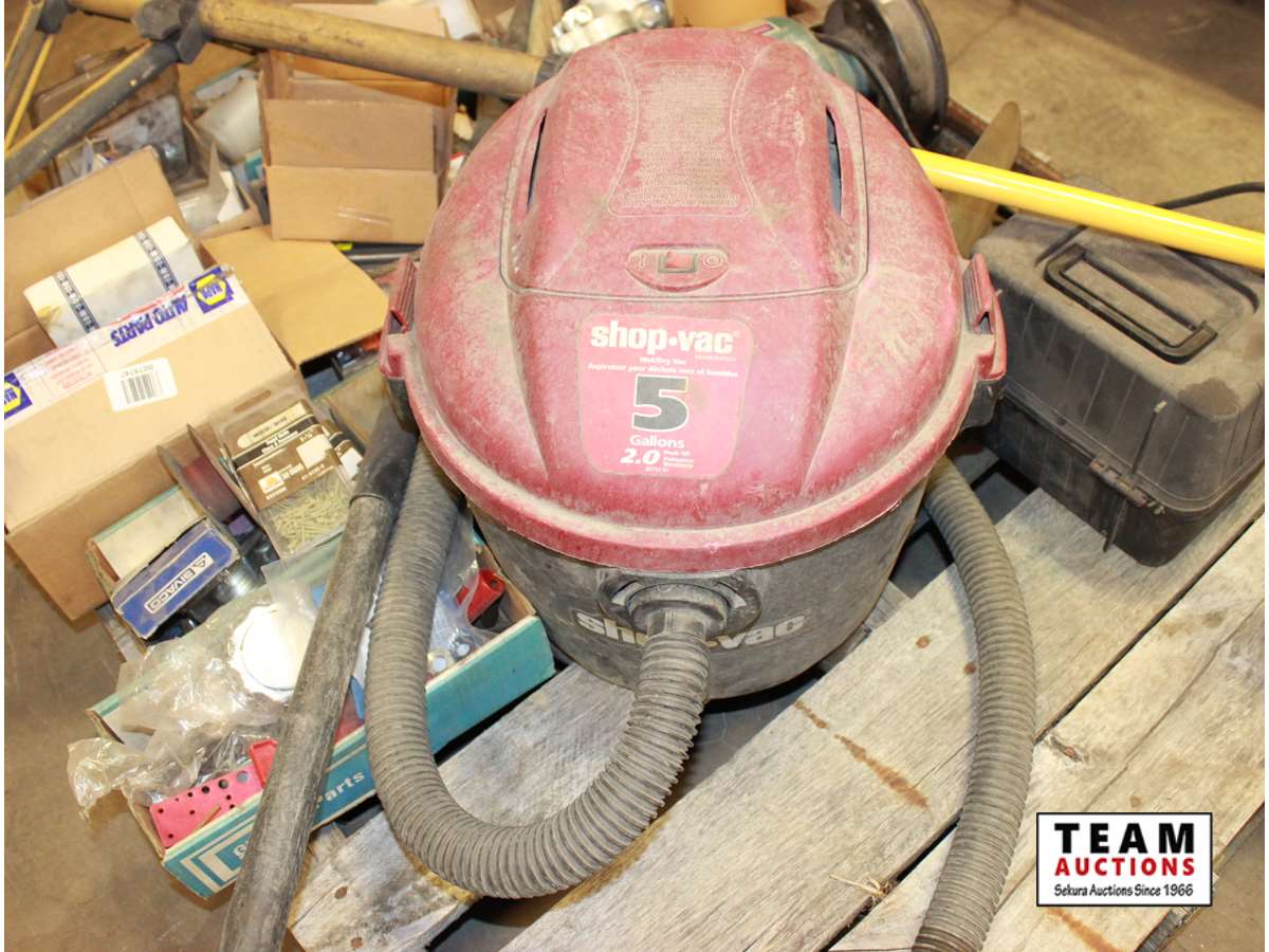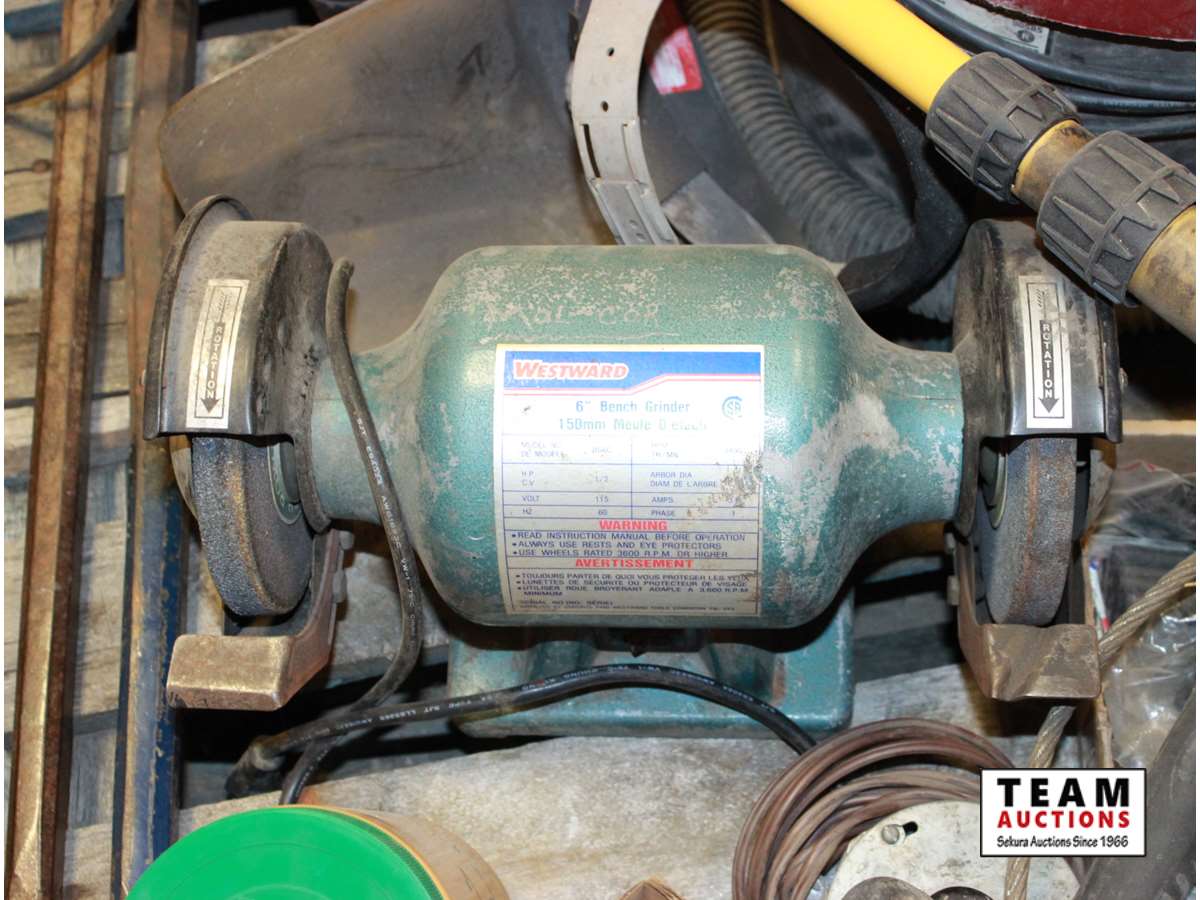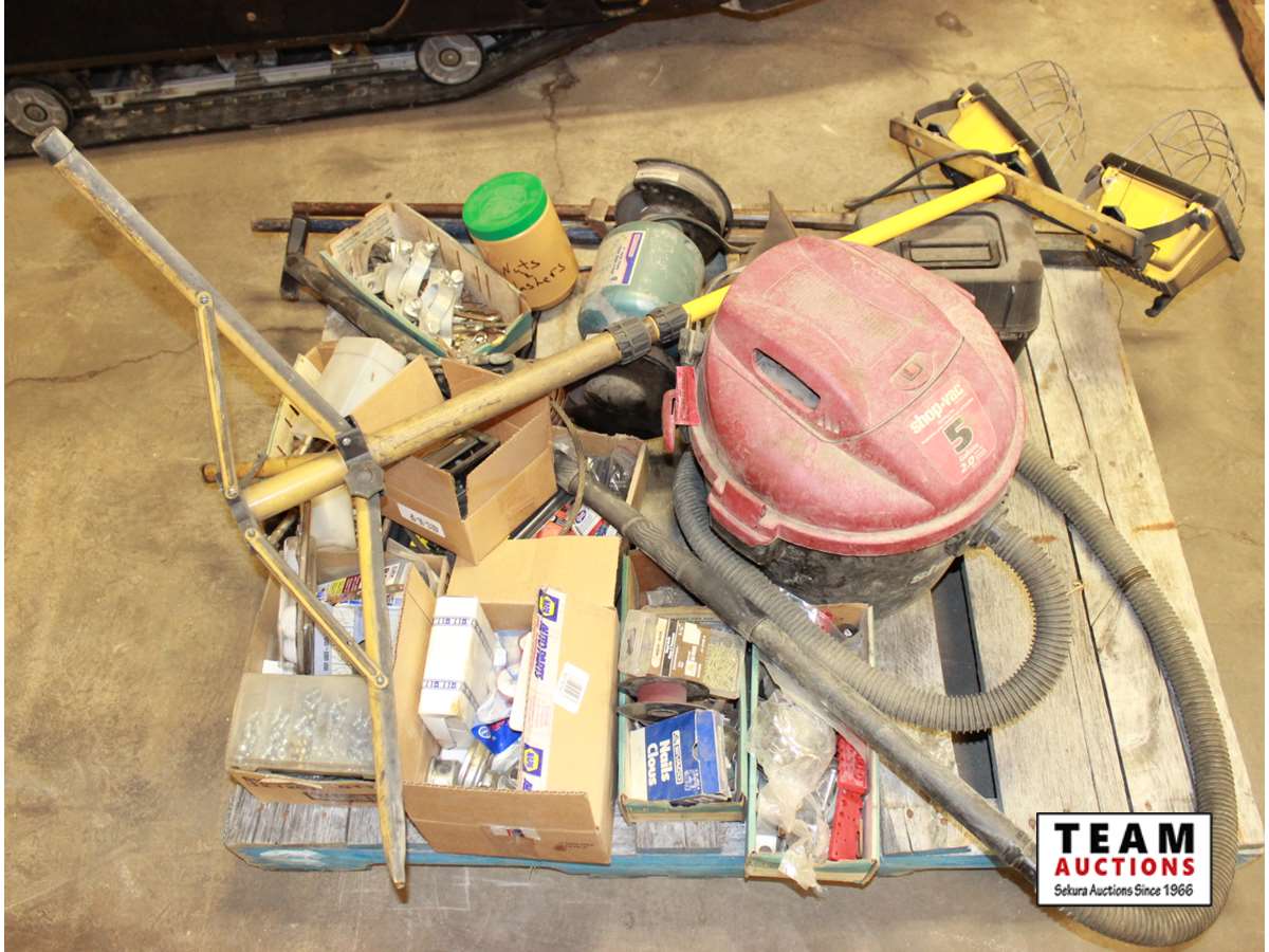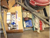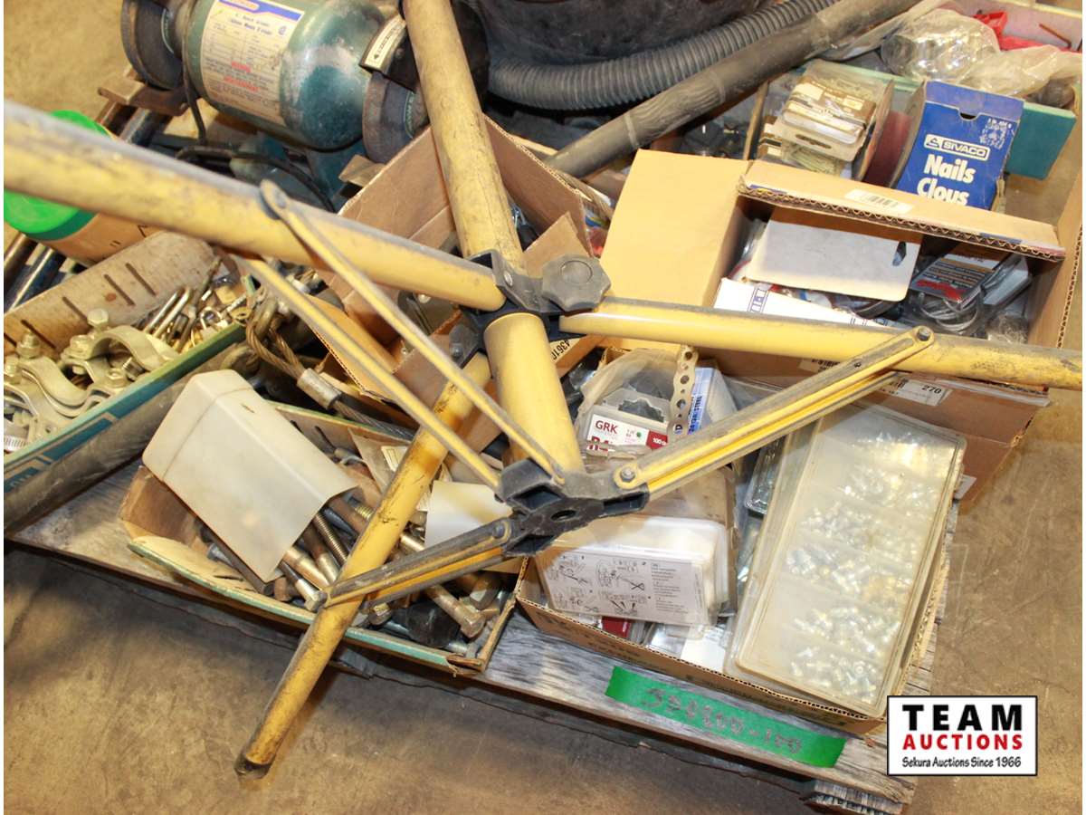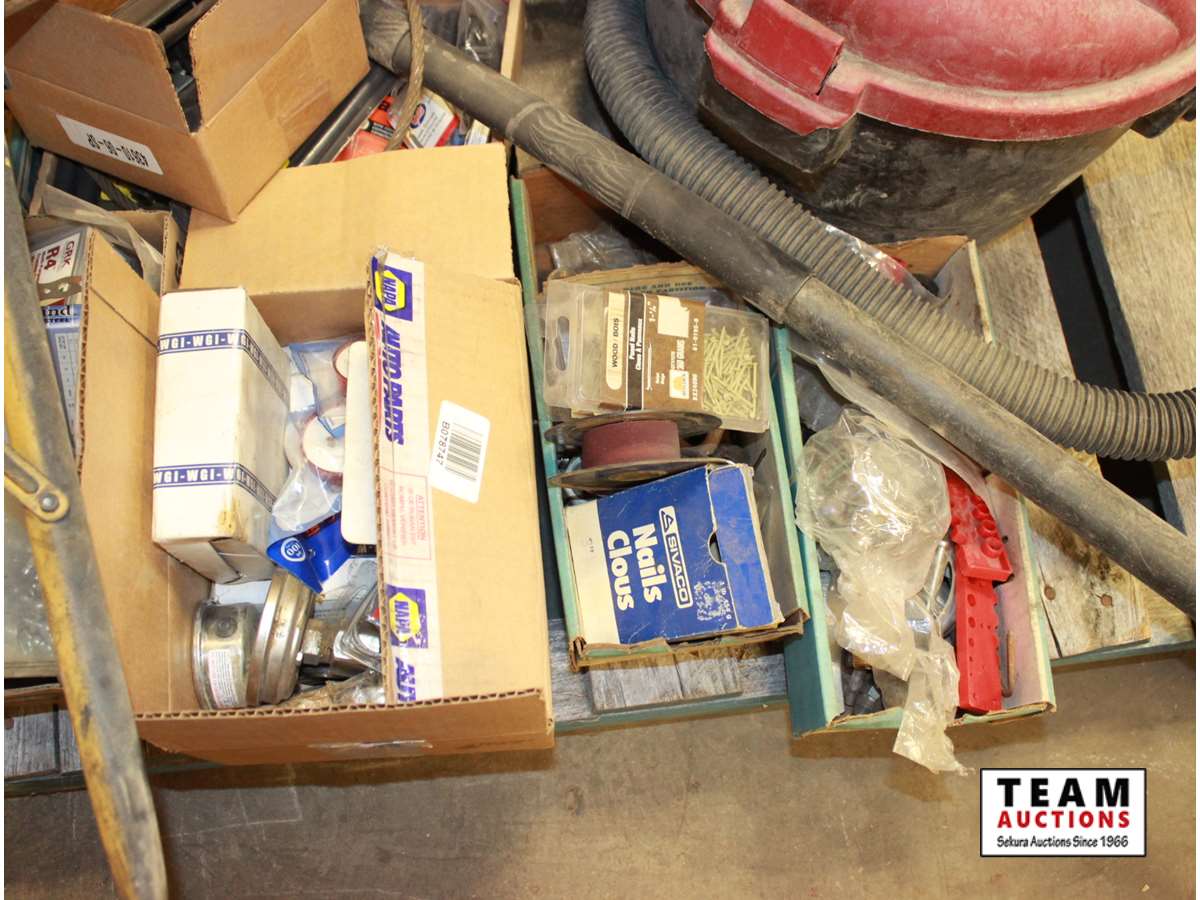 bench grinder, vacuum, shop light with stand, miscellaneous shop & hardware items