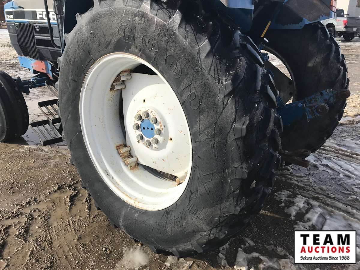 12 spd trans, A/C cab, 3 pt hitch, 2 hyd outlets, 540/1000 PTO, 11.00-16SL F, 18.4R38 R, 7369 hrs showing