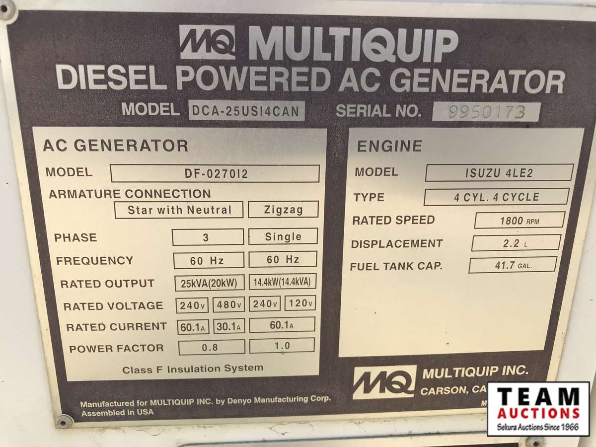 435 2014 Whisperwatt 25 Portable 20 kW Diesel Generator