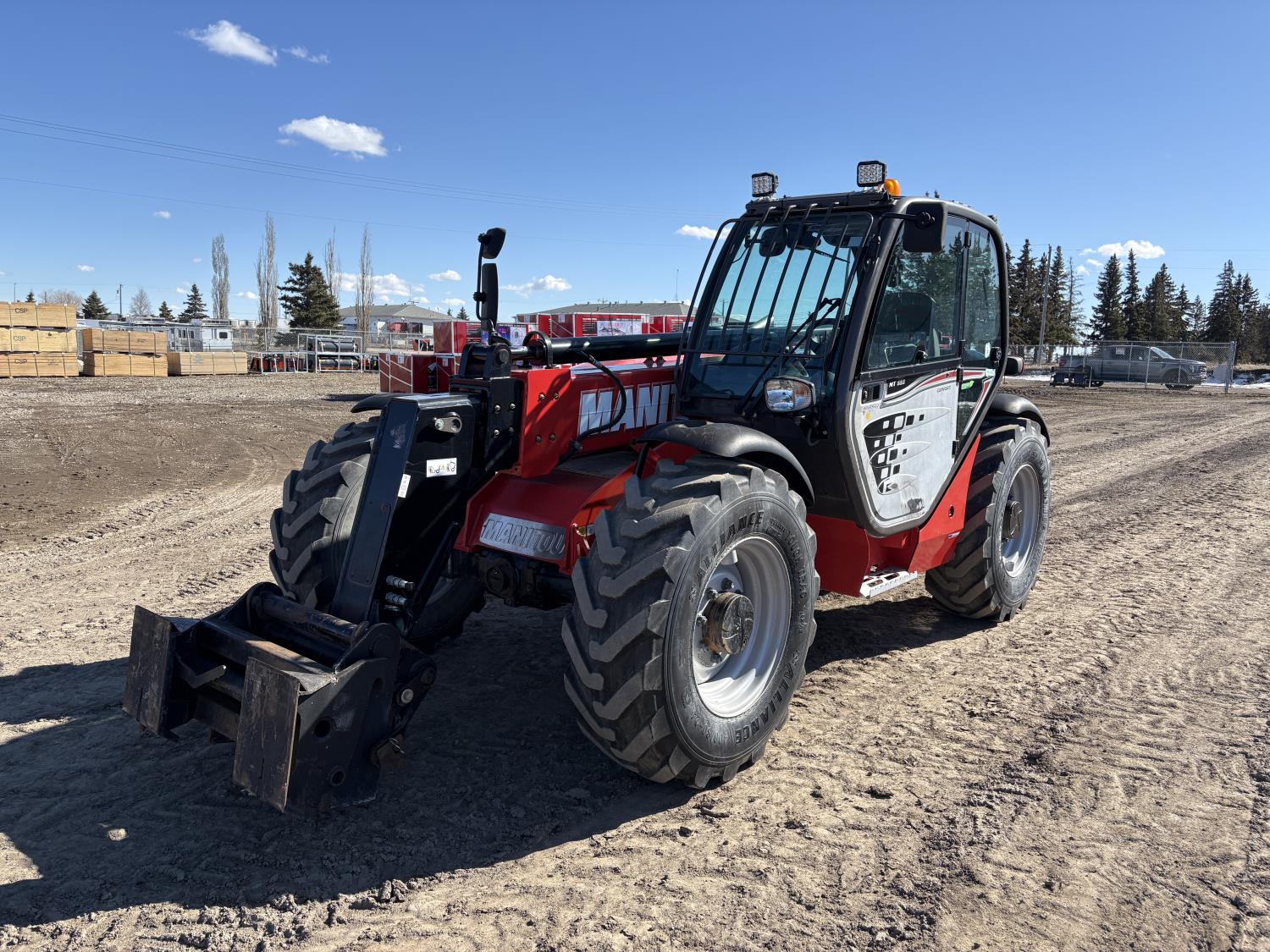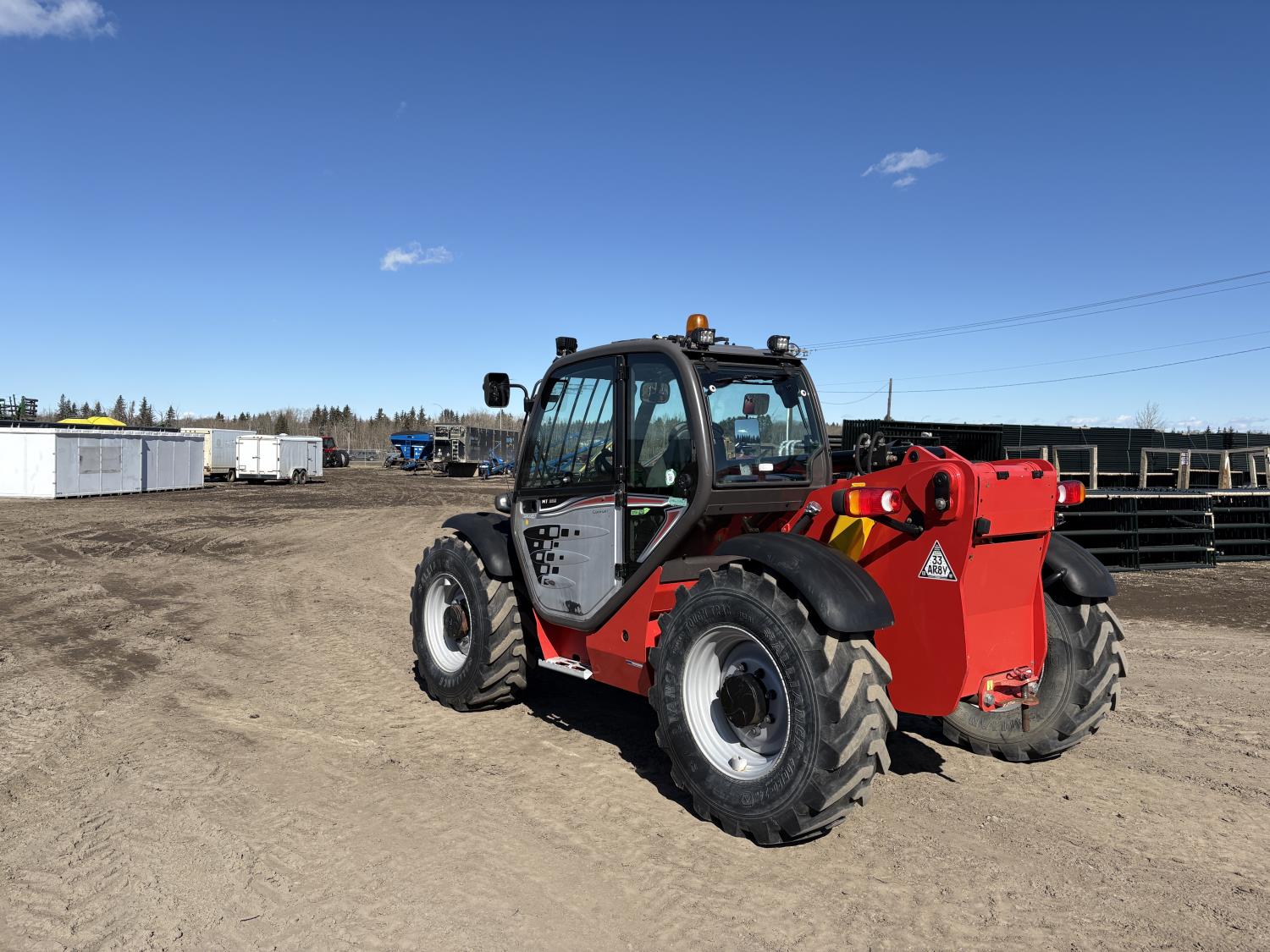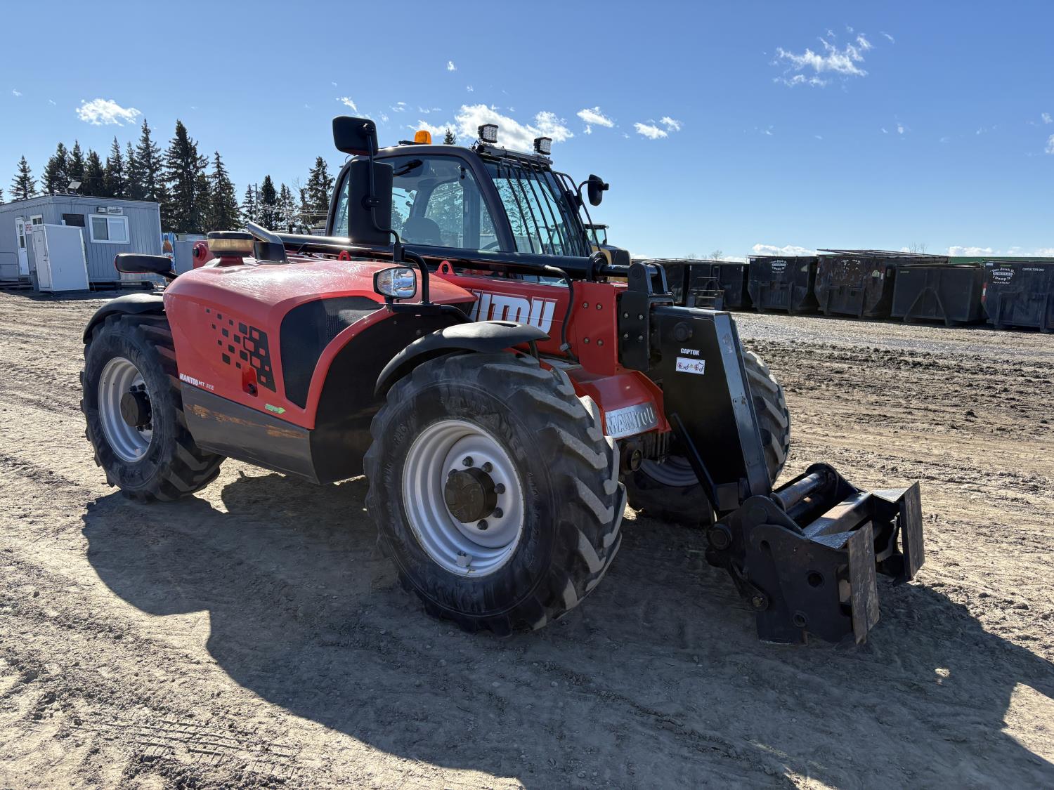 Deutz 3.6L, Manitou 5500 lb pallet forks, aux hyd, 29 ft 6 in. reach, cab, 400/80-24