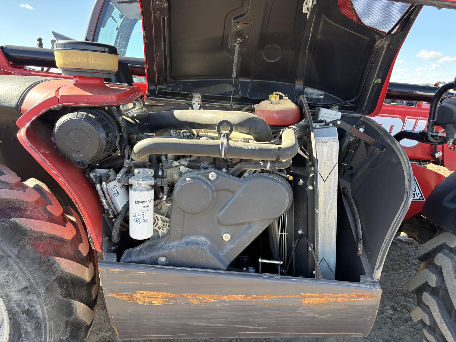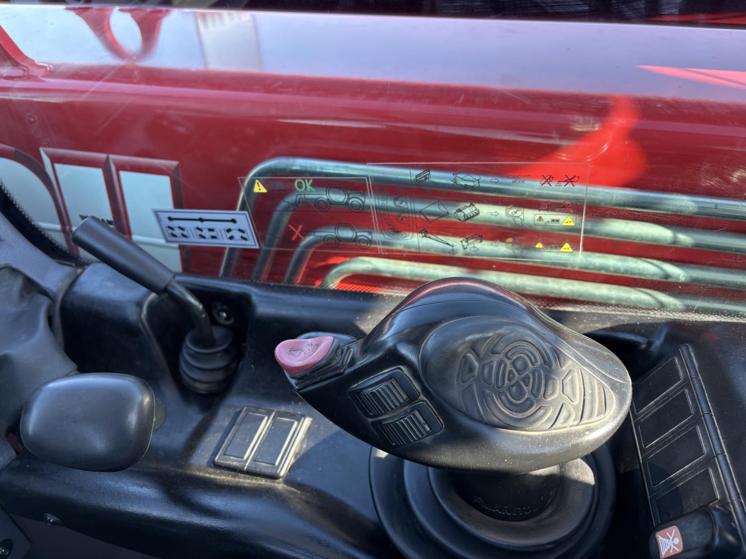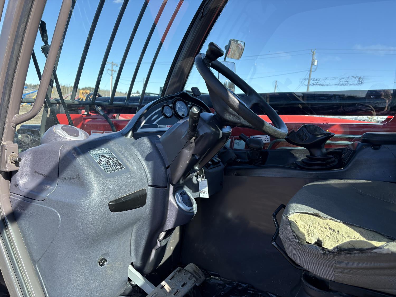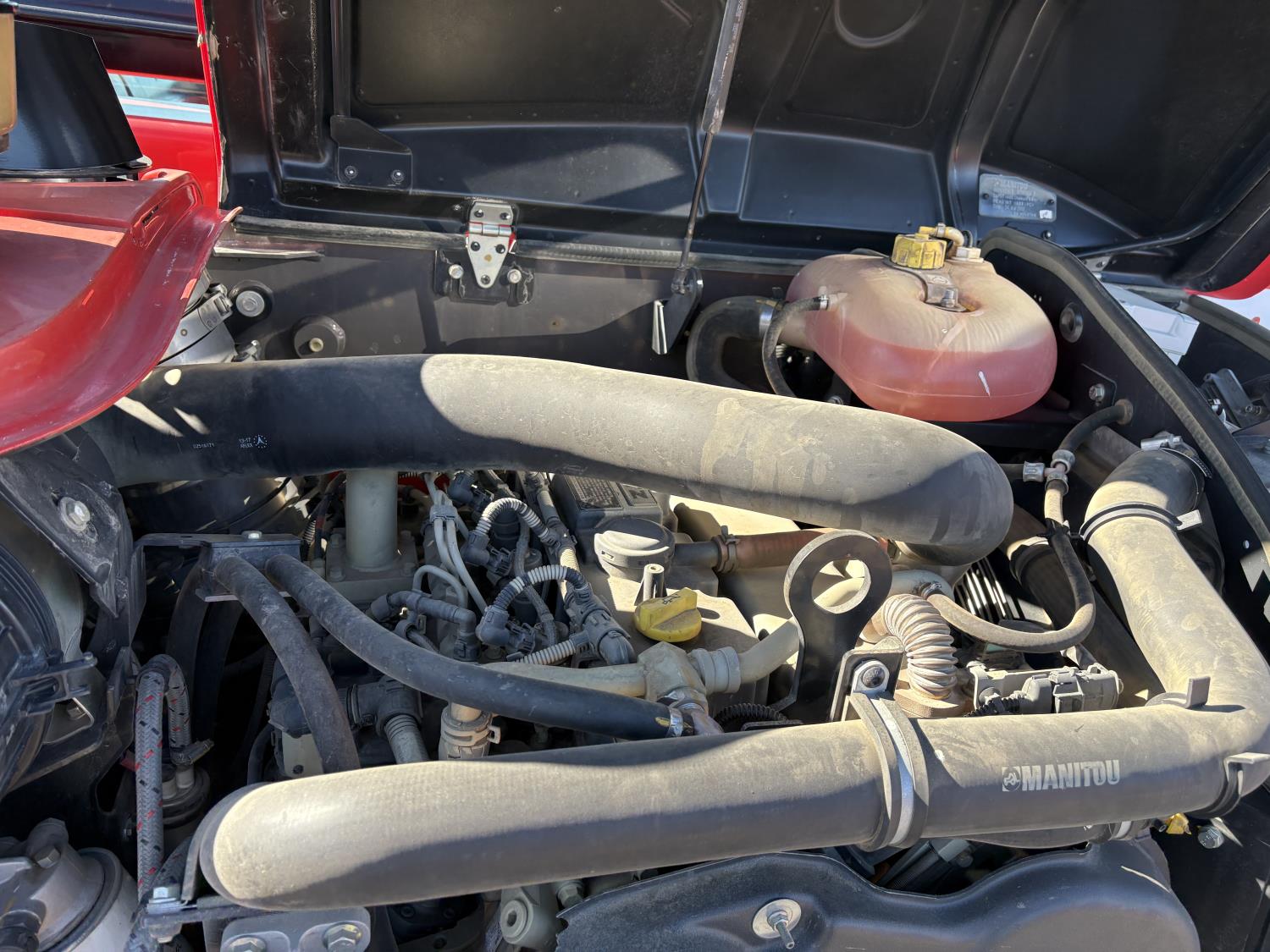 Deutz 3.6L, Manitou 5500 lb pallet forks, aux hyd, 29 ft 6 in. reach, cab, 400/80-24