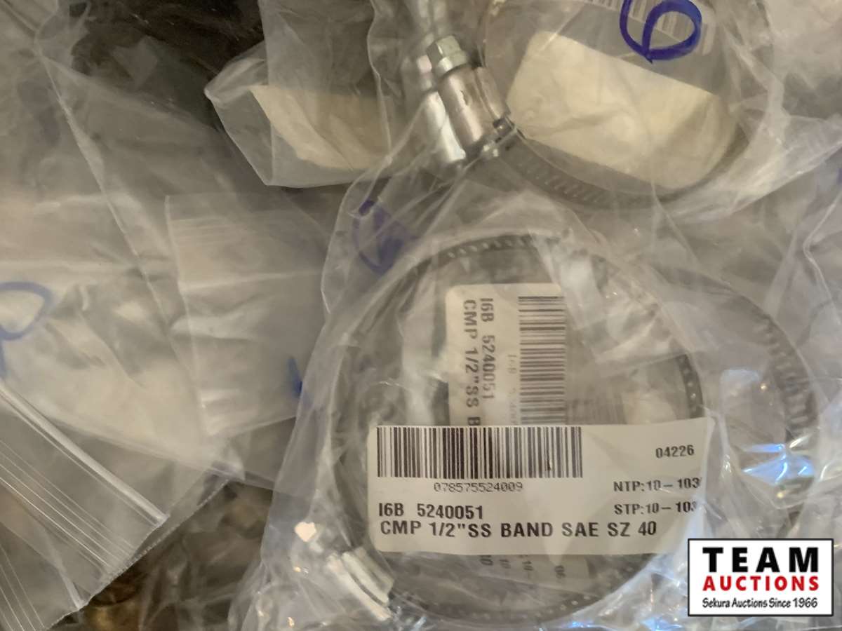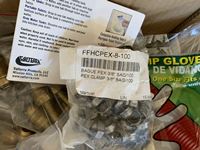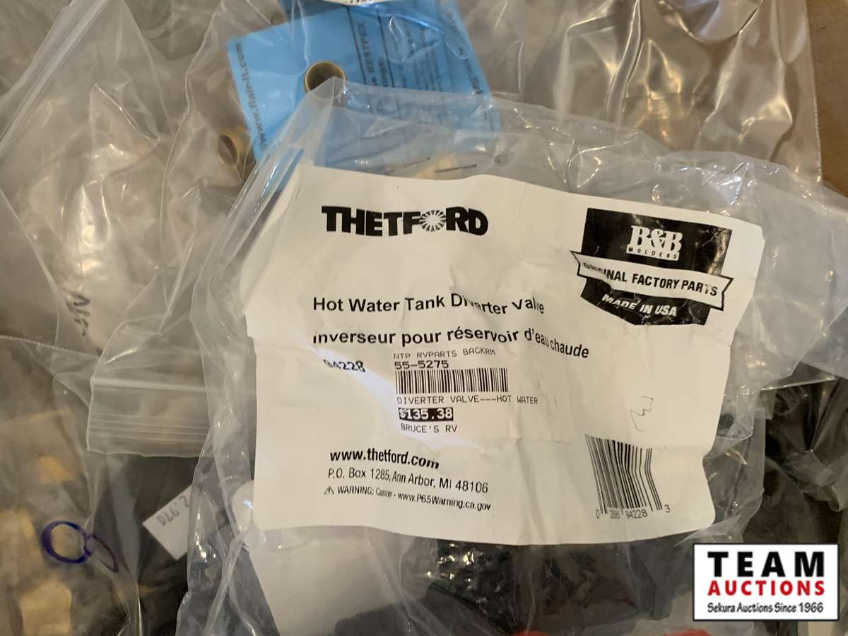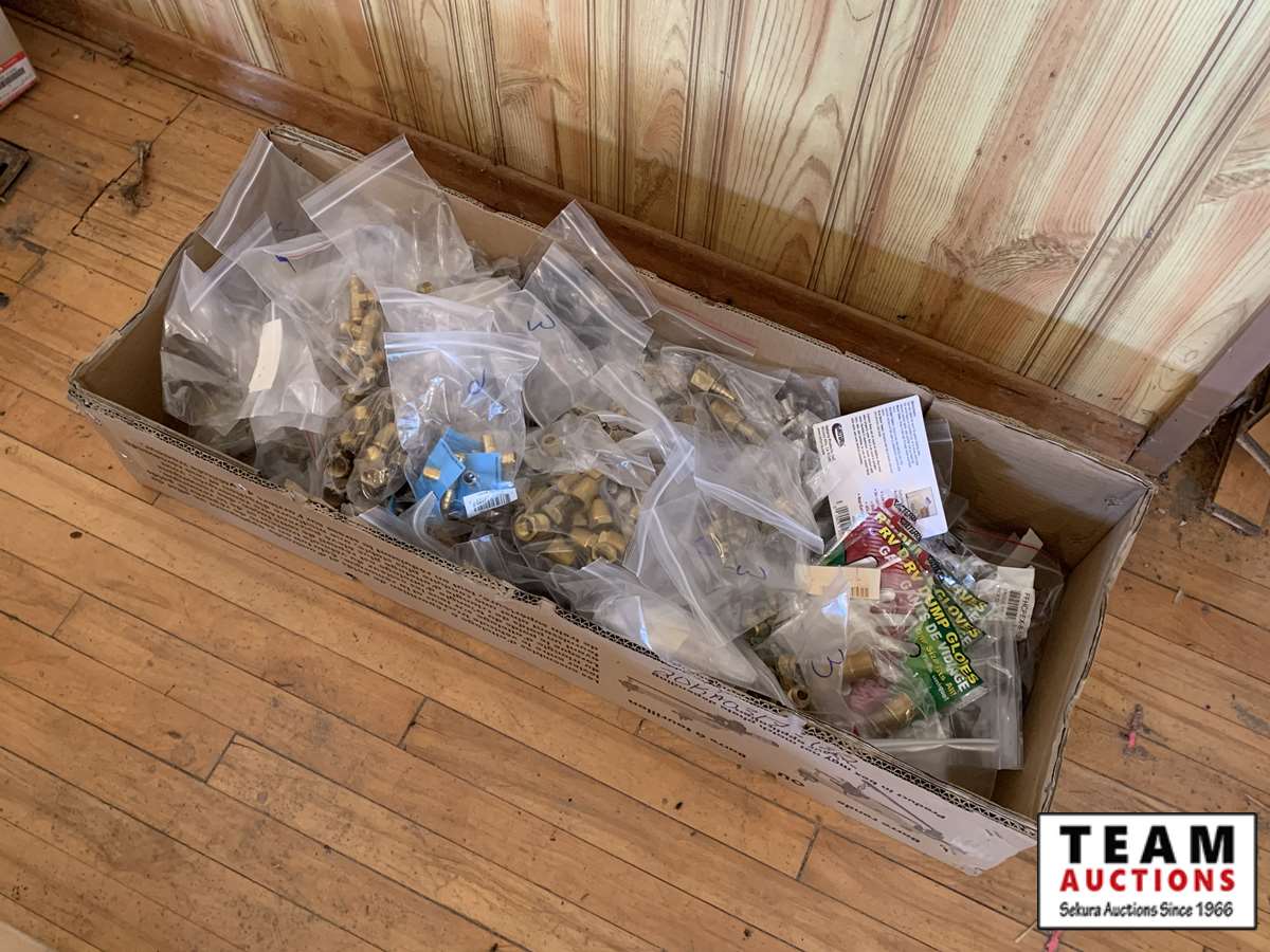 3/8 forged nuts, RV dump gloves, pex clamp 3/8 in. , latch (vent door), cmp 1/2 in. band, hot water tank diverter valve