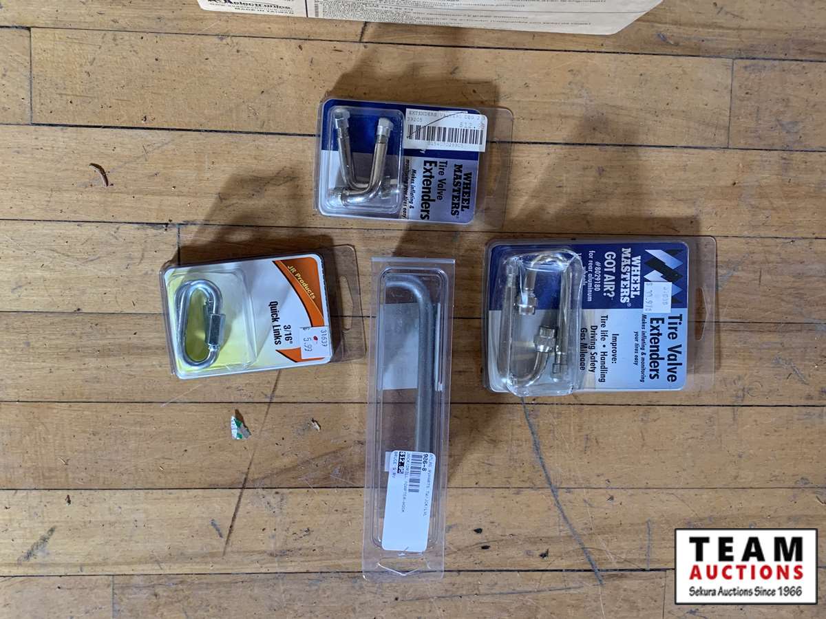 wheel masters tire valve extenders, jack drill adapter hook