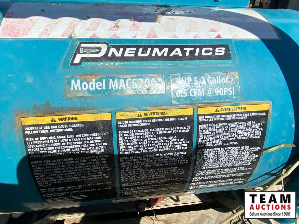 (1) Makita Pneumatics model MAC5200, 3 HP, 5.2 gallon, (1) Brute by Briggs & Stratton 10 gallon, 125 PSI