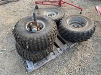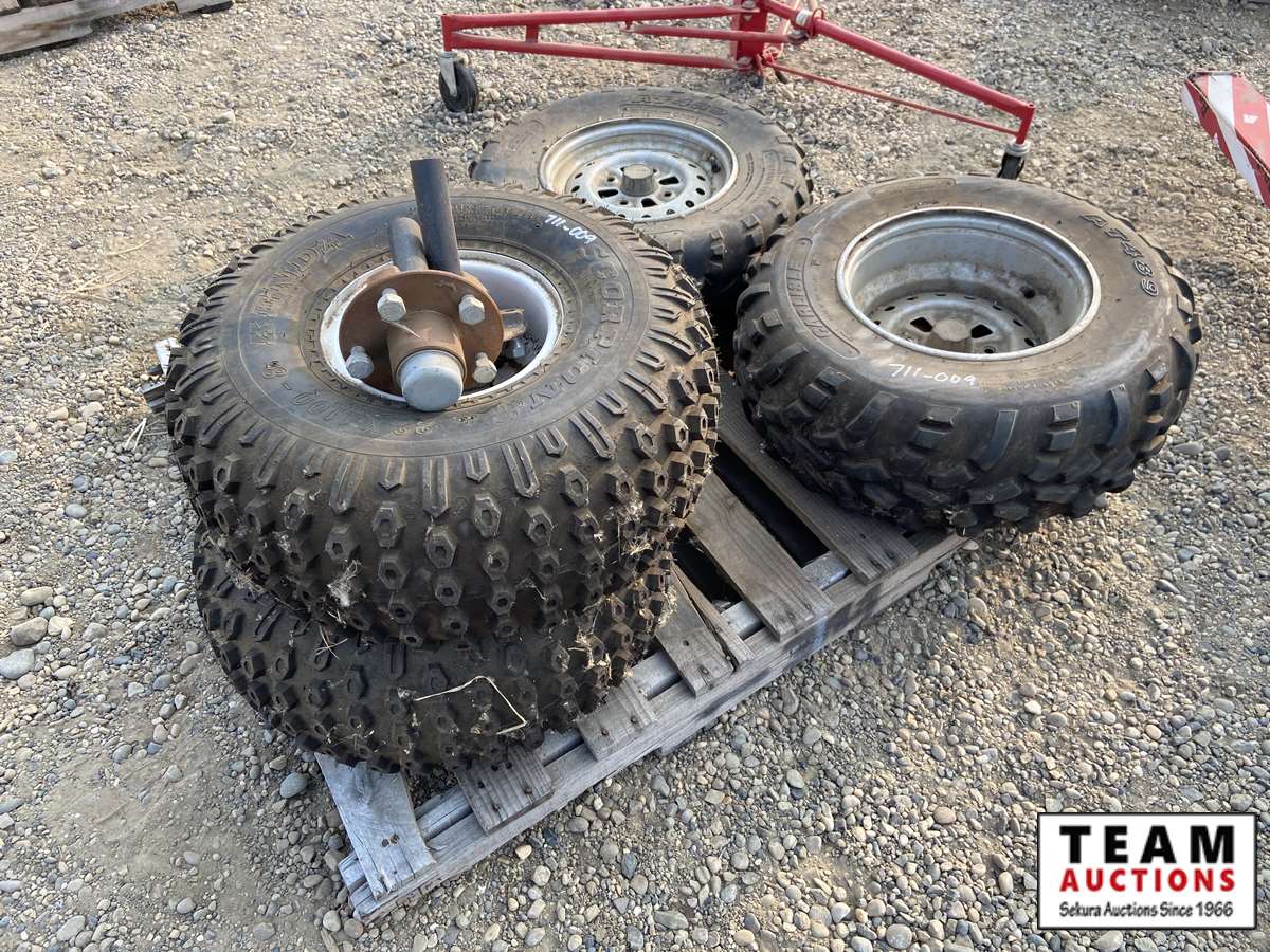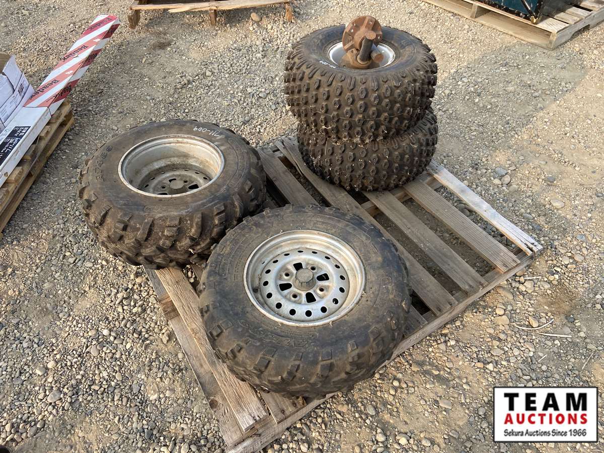 (2) used Quad tires and rims, (2) unused trailer tires and rims with axles
