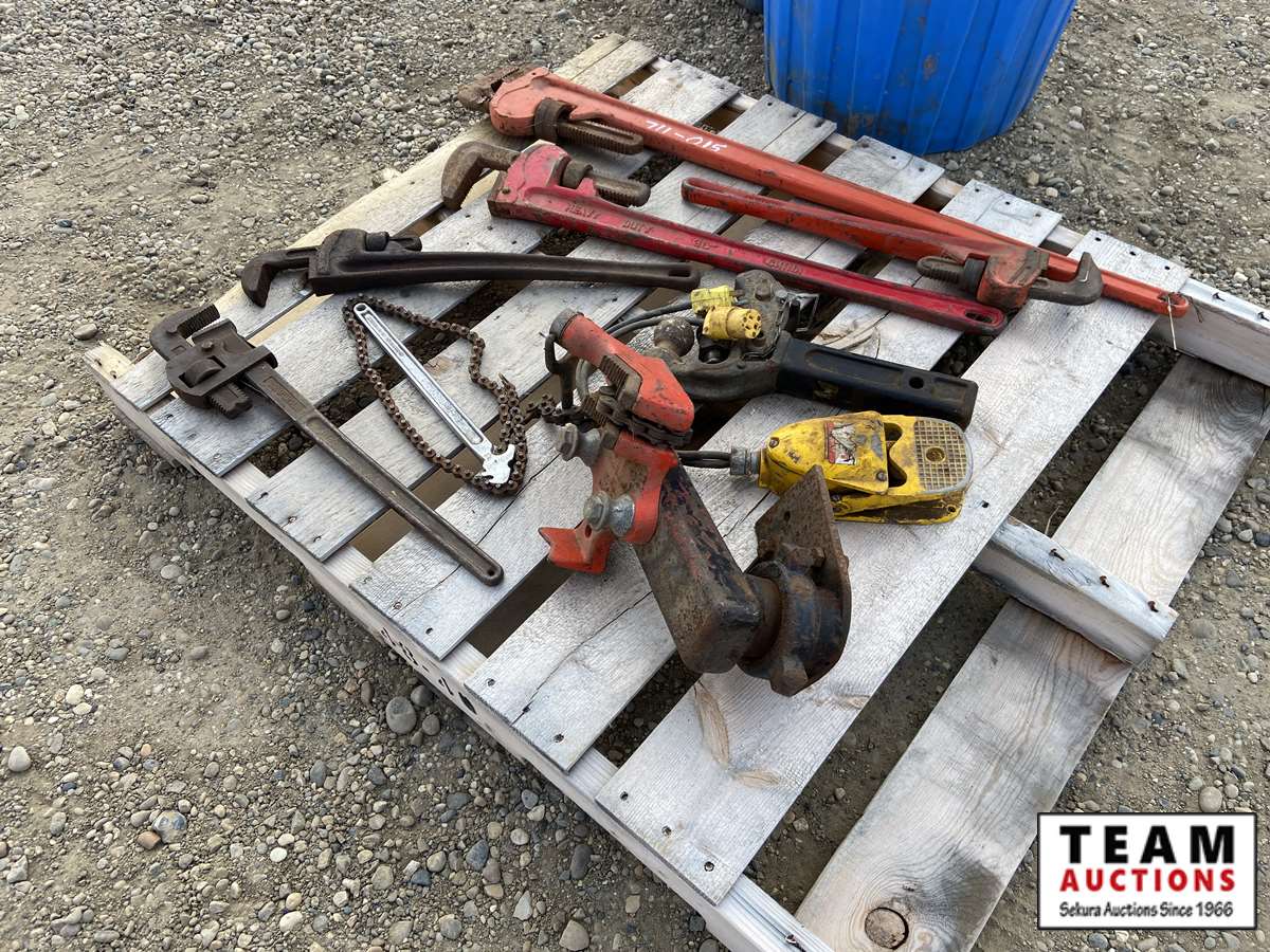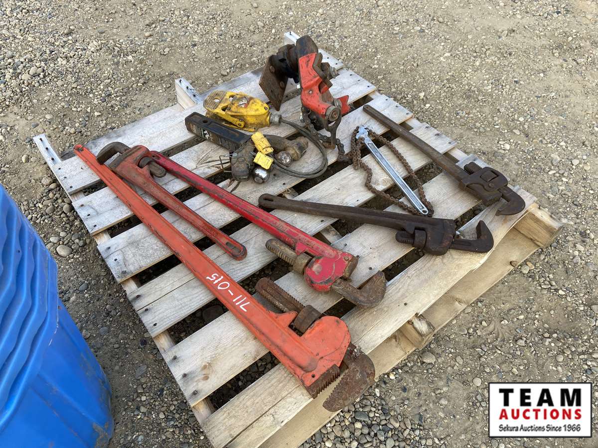 (5) pipe wrenches, chain vise, 2" receiver hitch, chain pipe wrench
