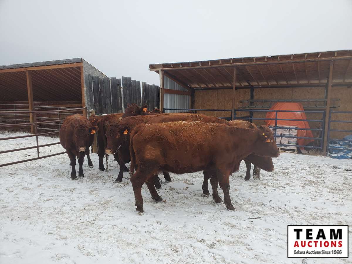 third calvers bred to Red Angus bulls to start calving March 15, 2021 with their fourth calf, tagged Q1-10 with orange tags, selling per cow x 10