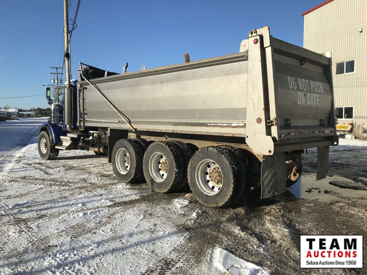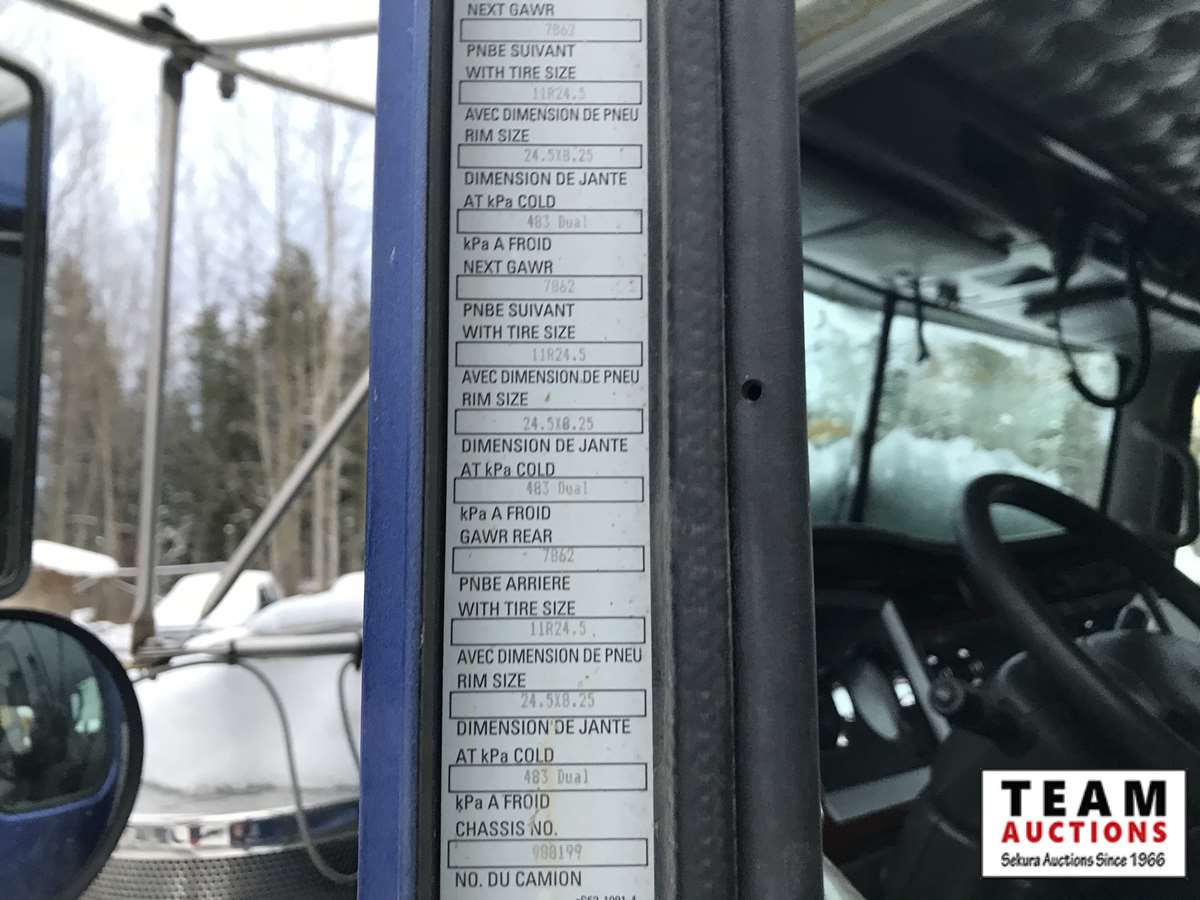 Cummins ISX15, 565 hp, eng brake, RTL018918B, trip diff lock, inter-axle lock, 4.30 ratio, 20,000 lb front, RZ-XX-166PWT rears, 266 in. W.B, Neway A/R susp, 22 ft Lanau steel box, telescopic hoist, electric roll tarp, plumbed for pup, alum wheels, 425/65R22.5 F, 11R24.5R, 19,769 hrs showing, 744,631 kms showing, BC CVIP 03/2021