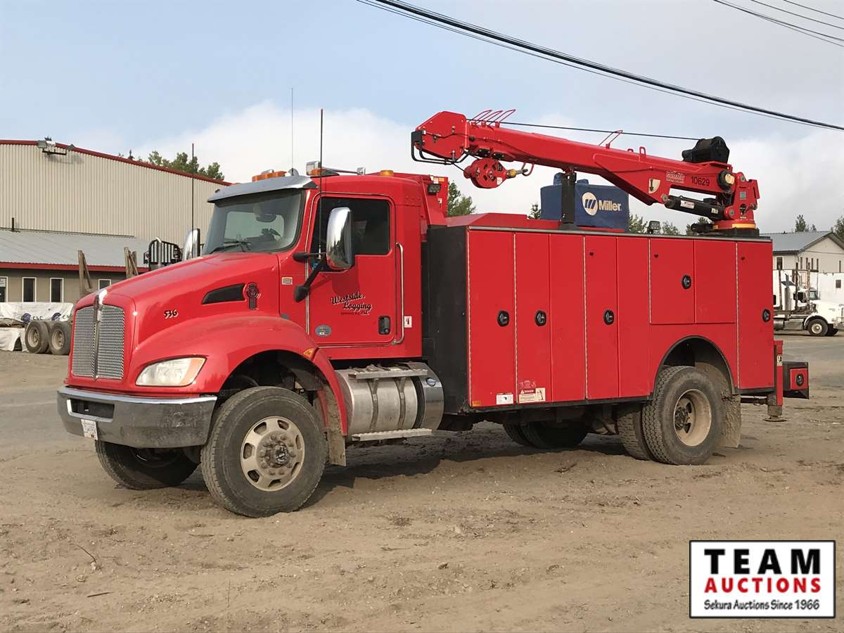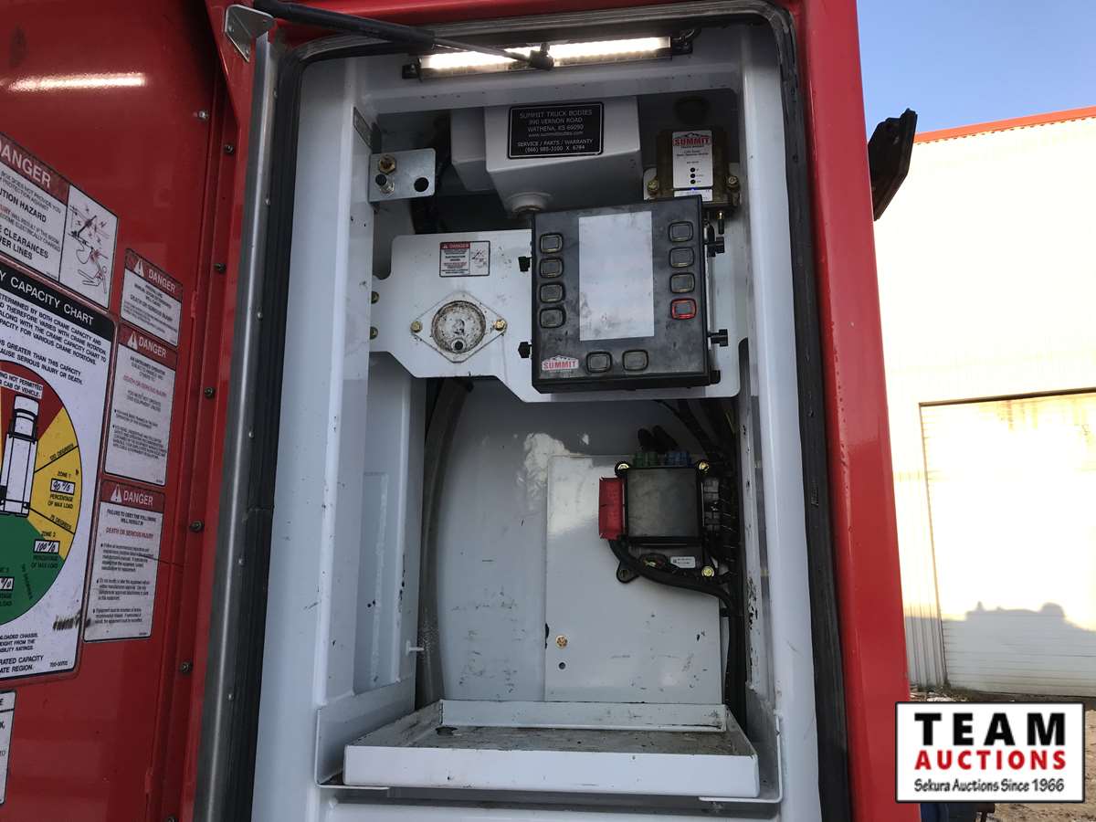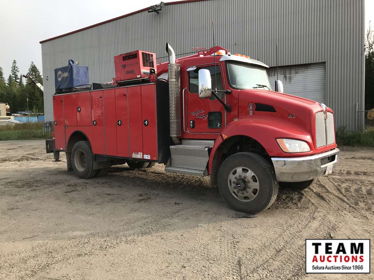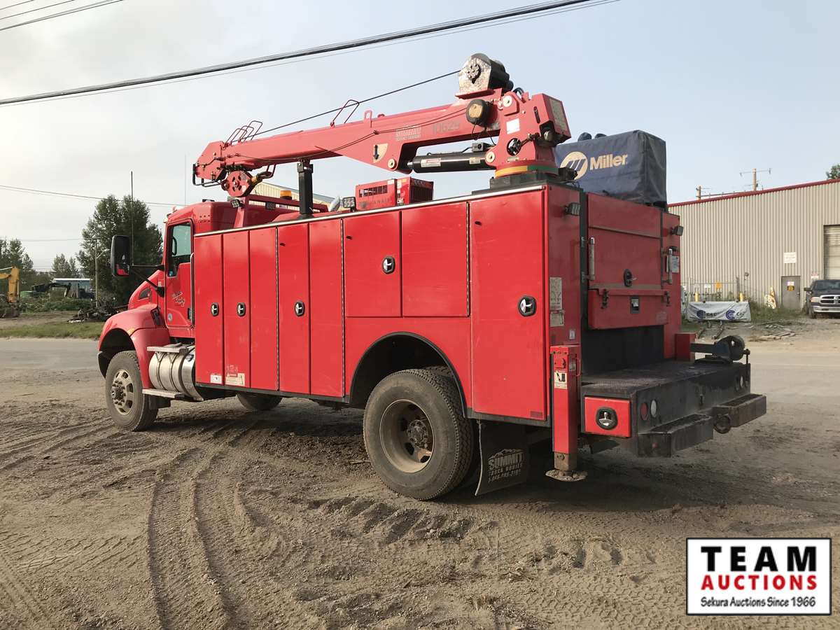 Paccar, PX-9, 350 hp, eng brake, Allison A/T, PTO, 12,000 lb Frt, 21,000 lb Rear, Fabco Warn front locking hubs, 197 in. W.B, Hendrickson A/R susp, 11R22.5, Summit truck body, Miller Trailblazer 325, 118 hrs, Vanair air comp, 136 hrs, Summit 10629 10,000 lb crane w. controller, 3,347 hrs showing, 66,524 kms showing, BC CVIP 03/2021