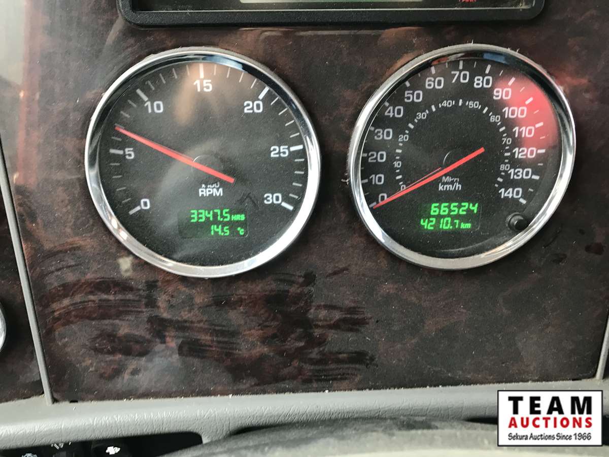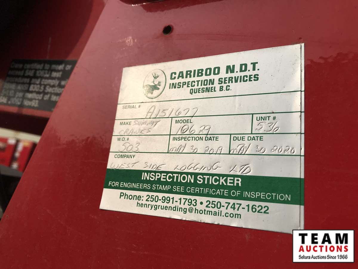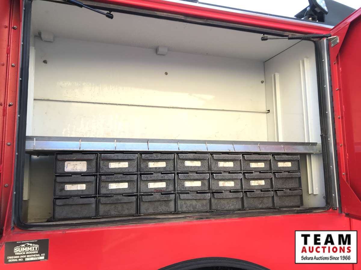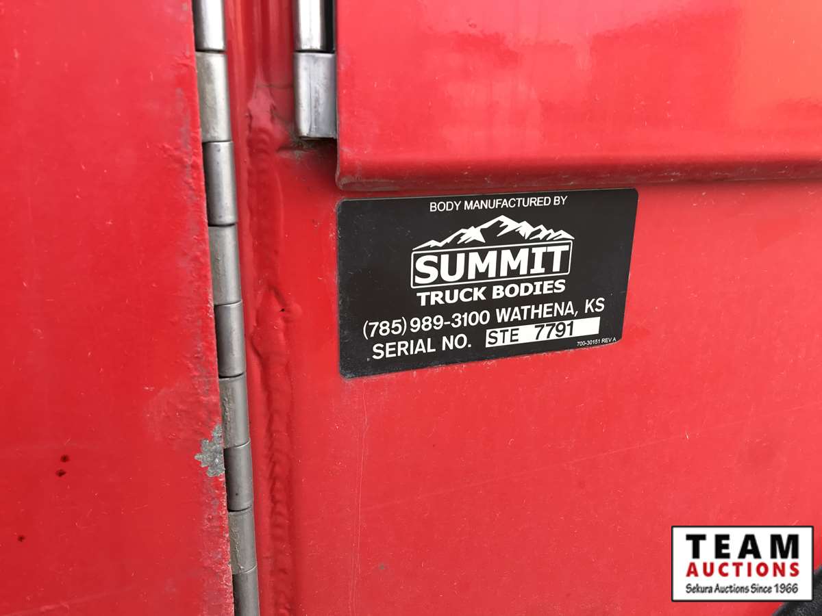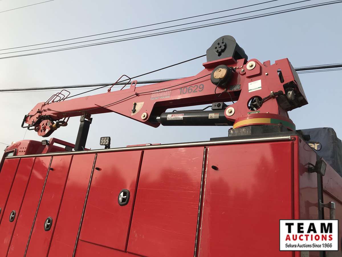 Paccar, PX-9, 350 hp, eng brake, Allison A/T, PTO, 12,000 lb Frt, 21,000 lb Rear, Fabco Warn front locking hubs, 197 in. W.B, Hendrickson A/R susp, 11R22.5, Summit truck body, Miller Trailblazer 325, 118 hrs, Vanair air comp, 136 hrs, Summit 10629 10,000 lb crane w. controller, 3,347 hrs showing, 66,524 kms showing, BC CVIP 03/2021