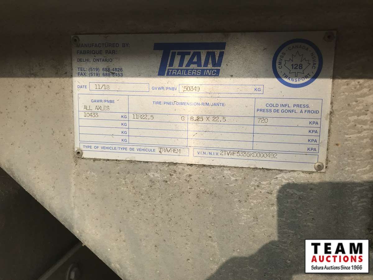 174 2019 Titan 53 Ft Tridem Aluminum Walking Floor Chip Trailer