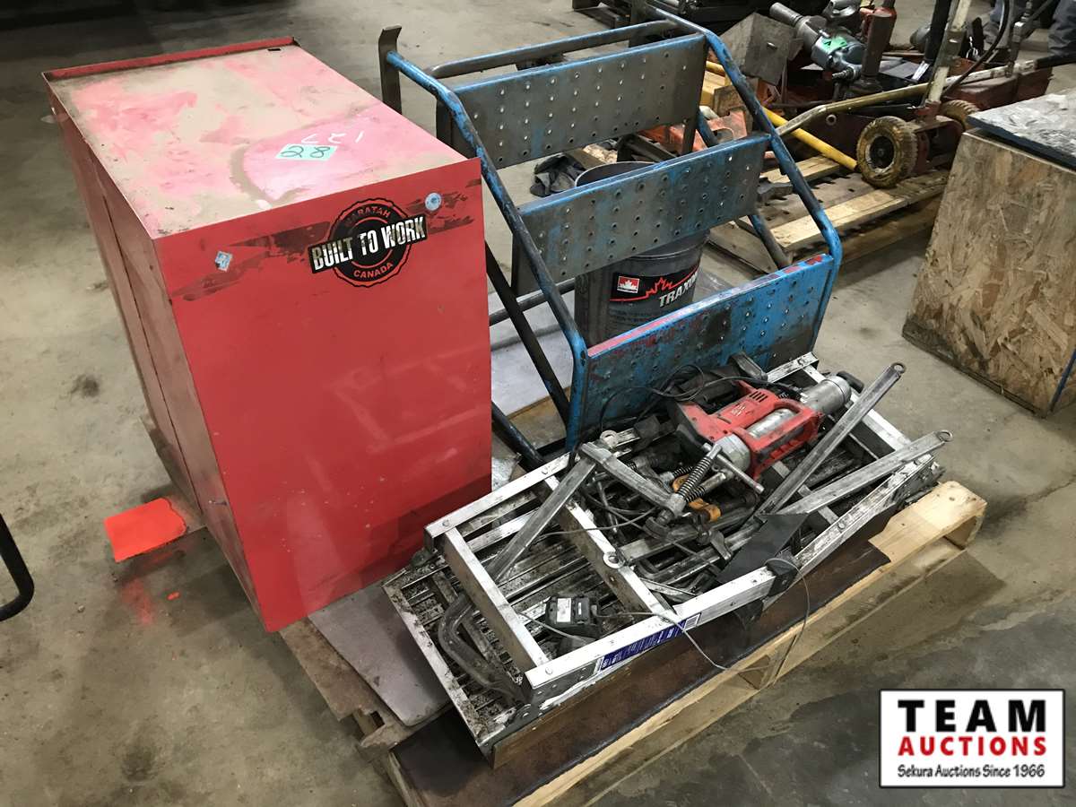 tool box, portable step, i-beam clamp, Milwaukee M18 cordless grease gun