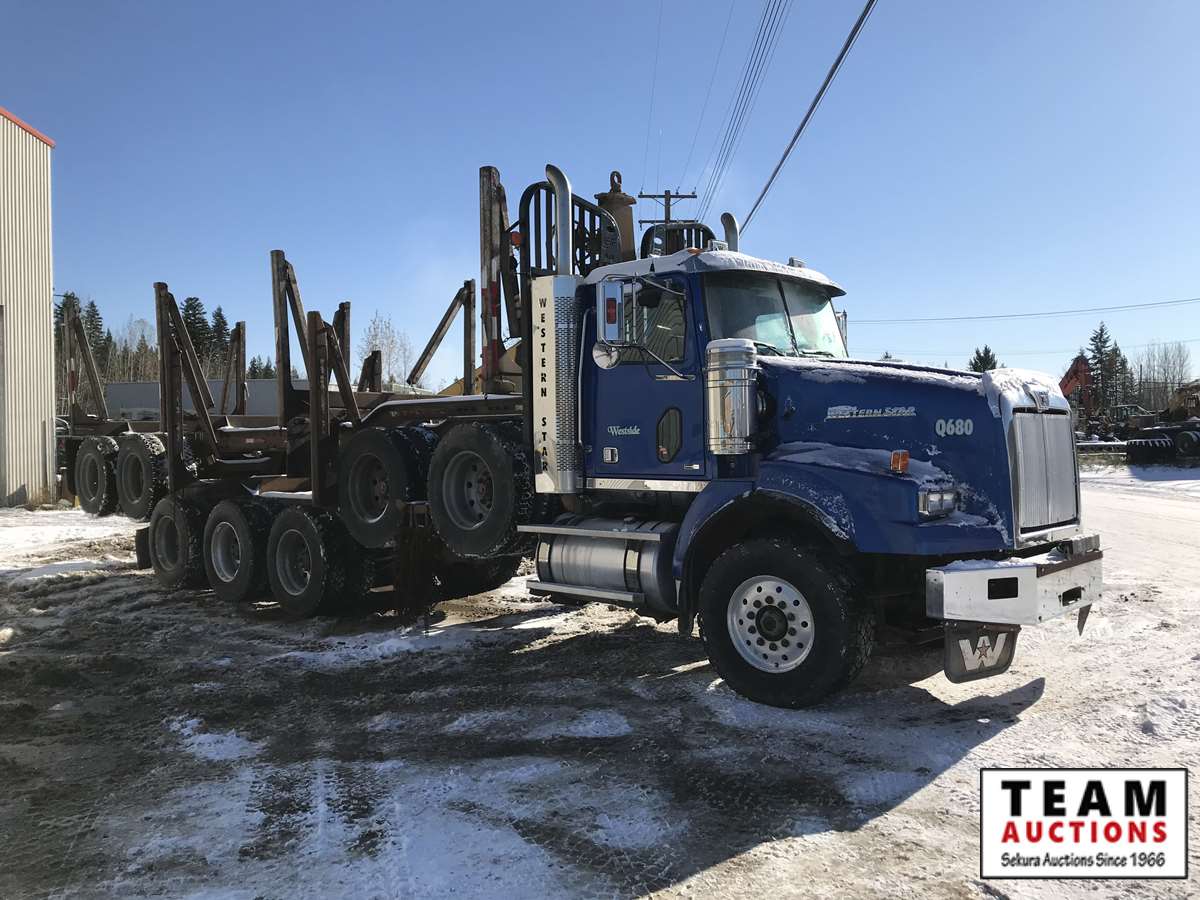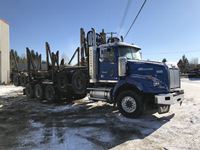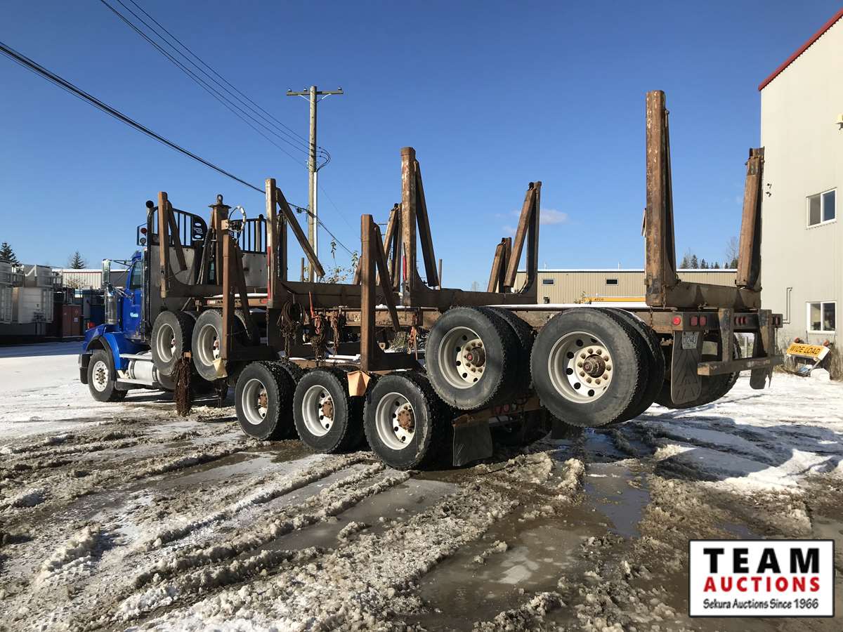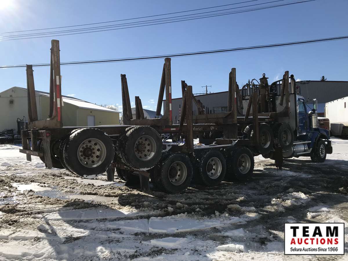 Detroit DD15, 560 hp, 14.8 L, eng brake, Eaton Fuller RTLO18918B, trip diff lock, inter-axle lock, A/R cab, Airliner A/R susp, 4.30 ratio, MFS20133A front, RZ166RSRS rears, 268 in. W.B., alum wheels, cab guard, (2) 9 ft 6 in. bunks, digital readout, 385/65R22.5 F, 11R24.5R, 16,738 hrs showing, 647,294 kms showing, BC CVIP 07/2020, sold with 2010 Arctic QD-32 quad axle log trailer, s/n 2M9PF4046AP016047, walking beam susp, (4) 8 ft 6 in. bunks, alum wheels, 11R24.5, BC CVIP 07/2020