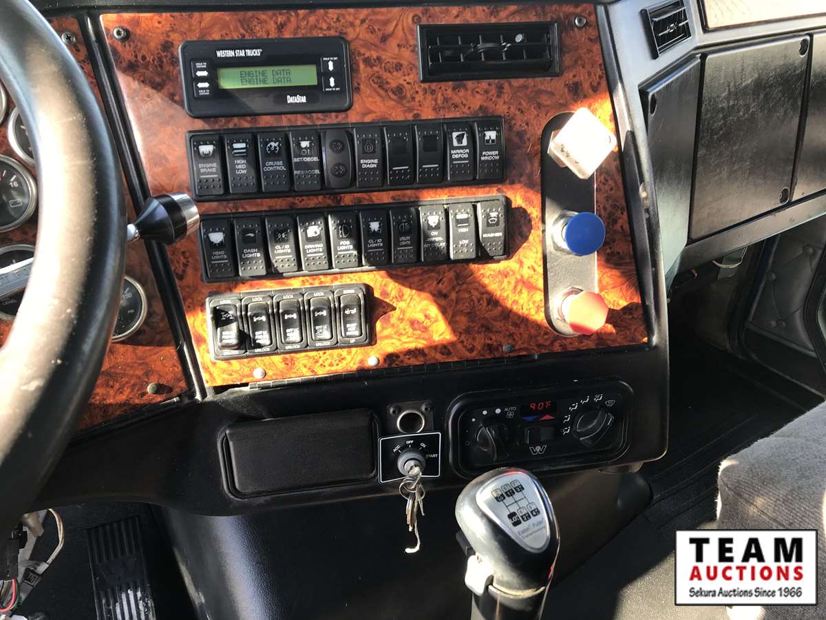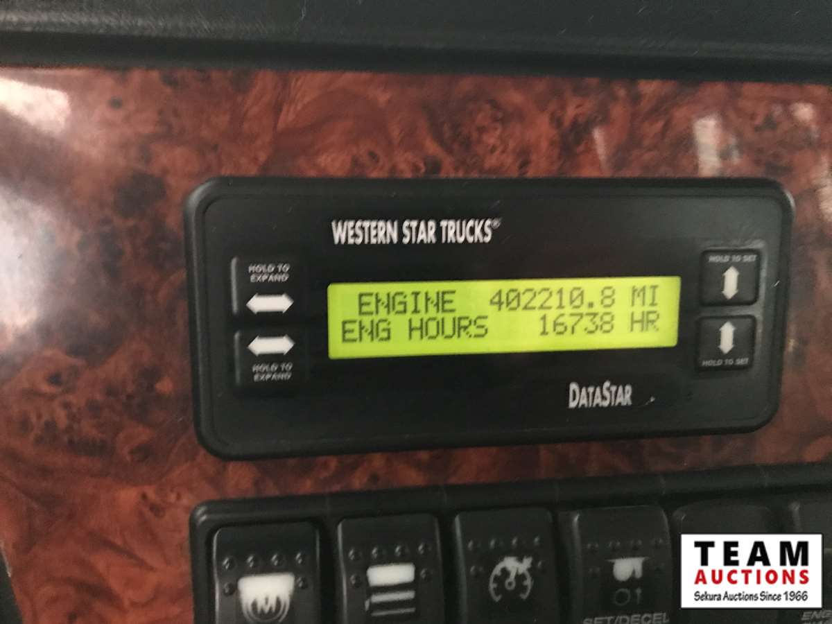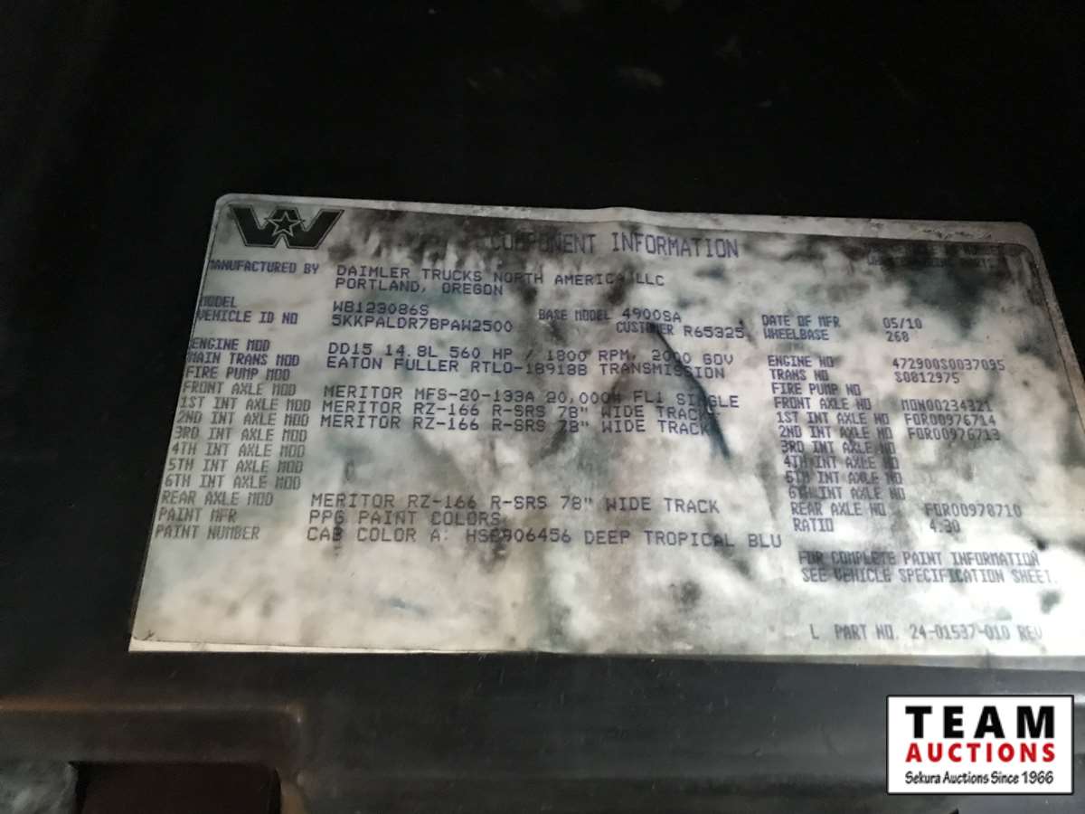 Detroit DD15, 560 hp, 14.8 L, eng brake, Eaton Fuller RTLO18918B, trip diff lock, inter-axle lock, A/R cab, Airliner A/R susp, 4.30 ratio, MFS20133A front, RZ166RSRS rears, 268 in. W.B., alum wheels, cab guard, (2) 9 ft 6 in. bunks, digital readout, 385/65R22.5 F, 11R24.5R, 16,738 hrs showing, 647,294 kms showing, BC CVIP 07/2020, sold with 2010 Arctic QD-32 quad axle log trailer, s/n 2M9PF4046AP016047, walking beam susp, (4) 8 ft 6 in. bunks, alum wheels, 11R24.5, BC CVIP 07/2020