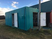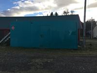 very well built with good paint, square tank with shed on one end, (2) new Racor filters, meter, 9' high, 22' long, 11'6" wide, skid is 25' long