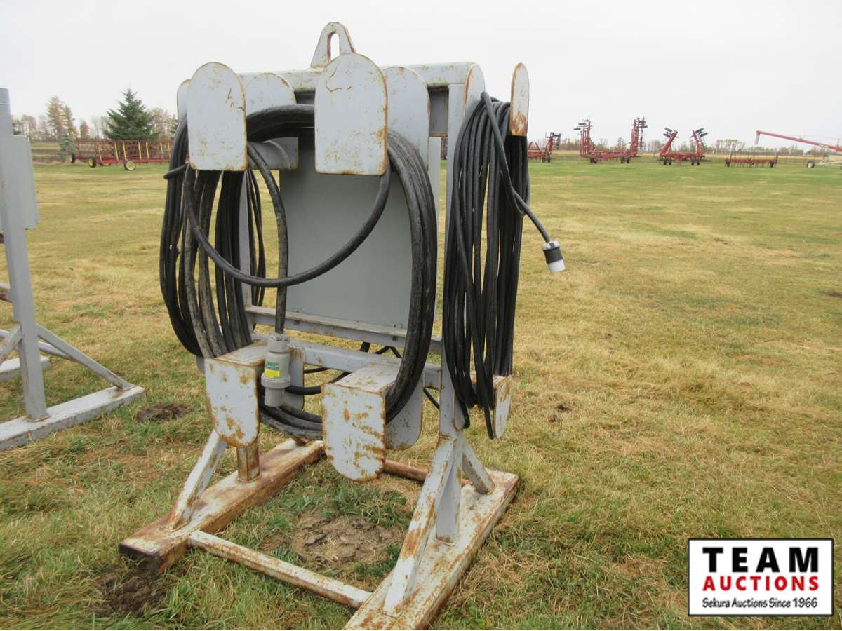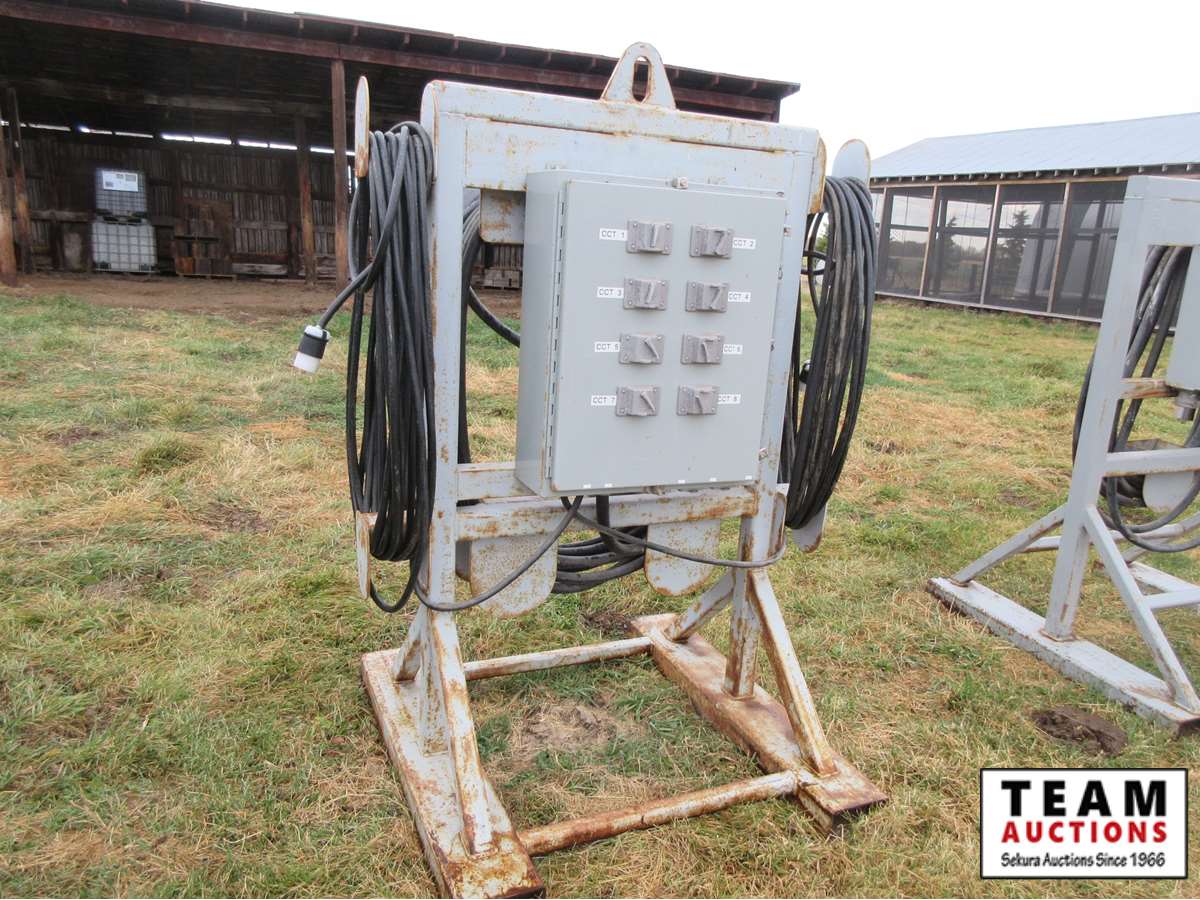 100 Amp 3 phase to panel with input cord, single phase panel, (6) 30Amp twist plugs, (2)cords with plugs
