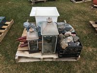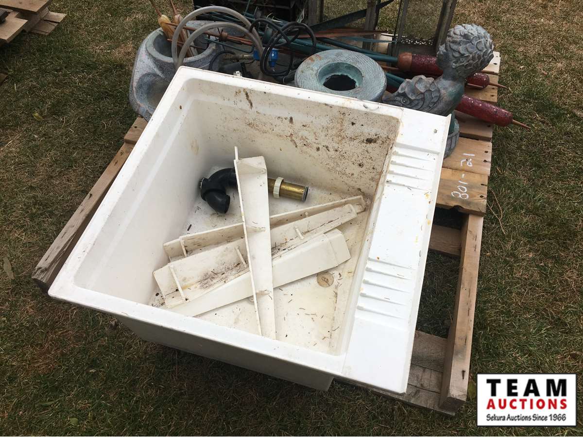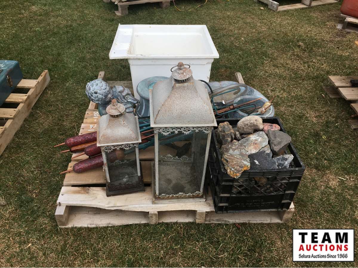 water fountain, poly sink, rocks, lanterns and misc items