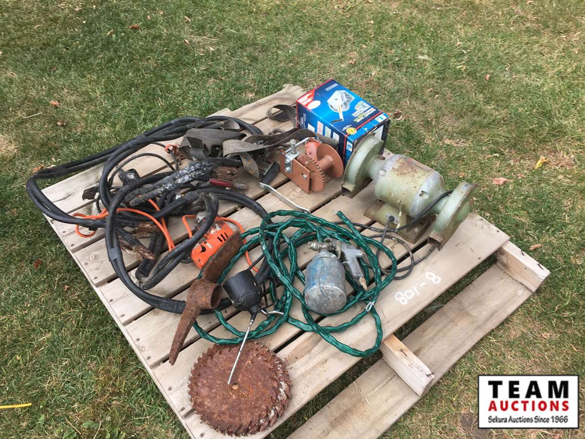 booster cables, boat winches, oil can, bench grinder, paint sprayer & more