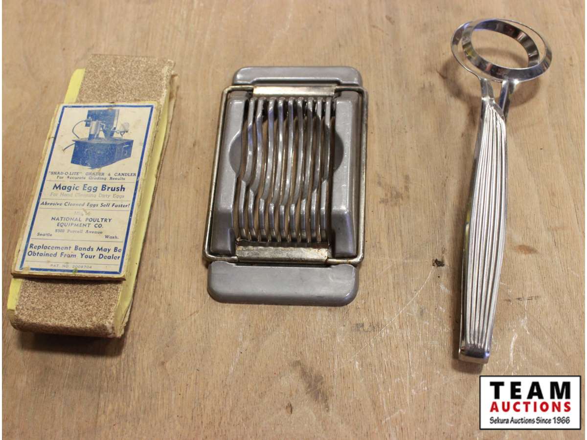 (2) hard boiled egg maker, (2) egg scales, magic egg brush, egg slicer