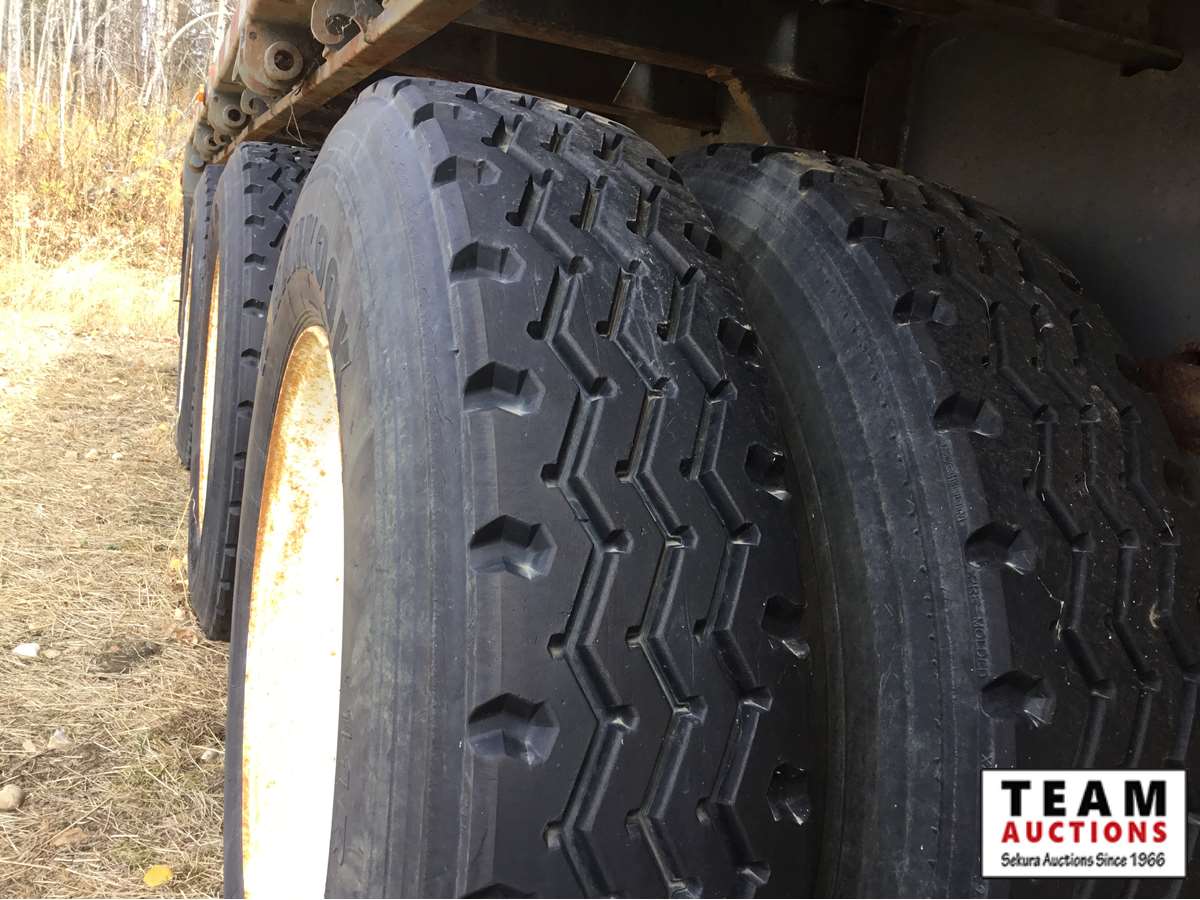 air ride suspension, full rear sliding sub frame on suspension,(3) bar winch's on both sides, tool box, good 24.5" rubber, Alberta registered, new Alberta CVIP