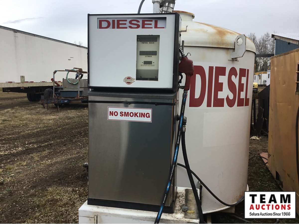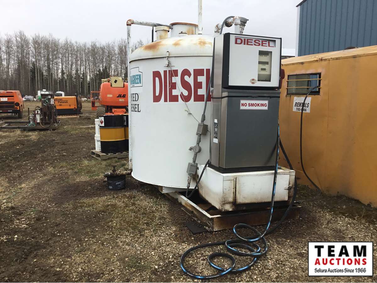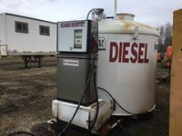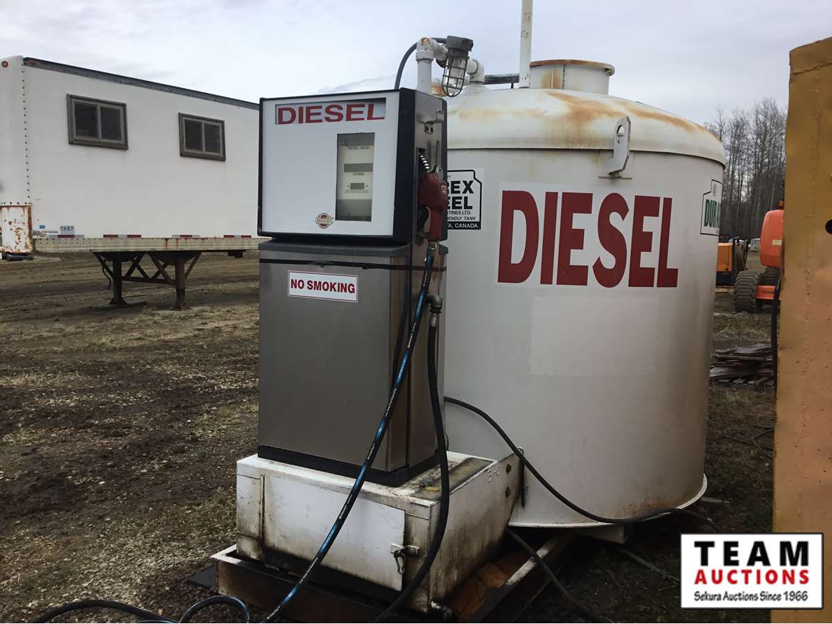 mounted on steel frame,walk up ladder, 110 V fuel pump, meter, hose and nozzle, was used for diesel since new