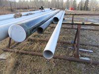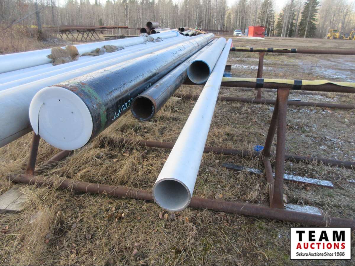 (3) curved pipe, (8) 4", (2) 3" & (1) 6" stainless steel 22' +/- pipes, (1) 8" steel pipe, (1) 4" steel pipe & (1) 3" steel pipe