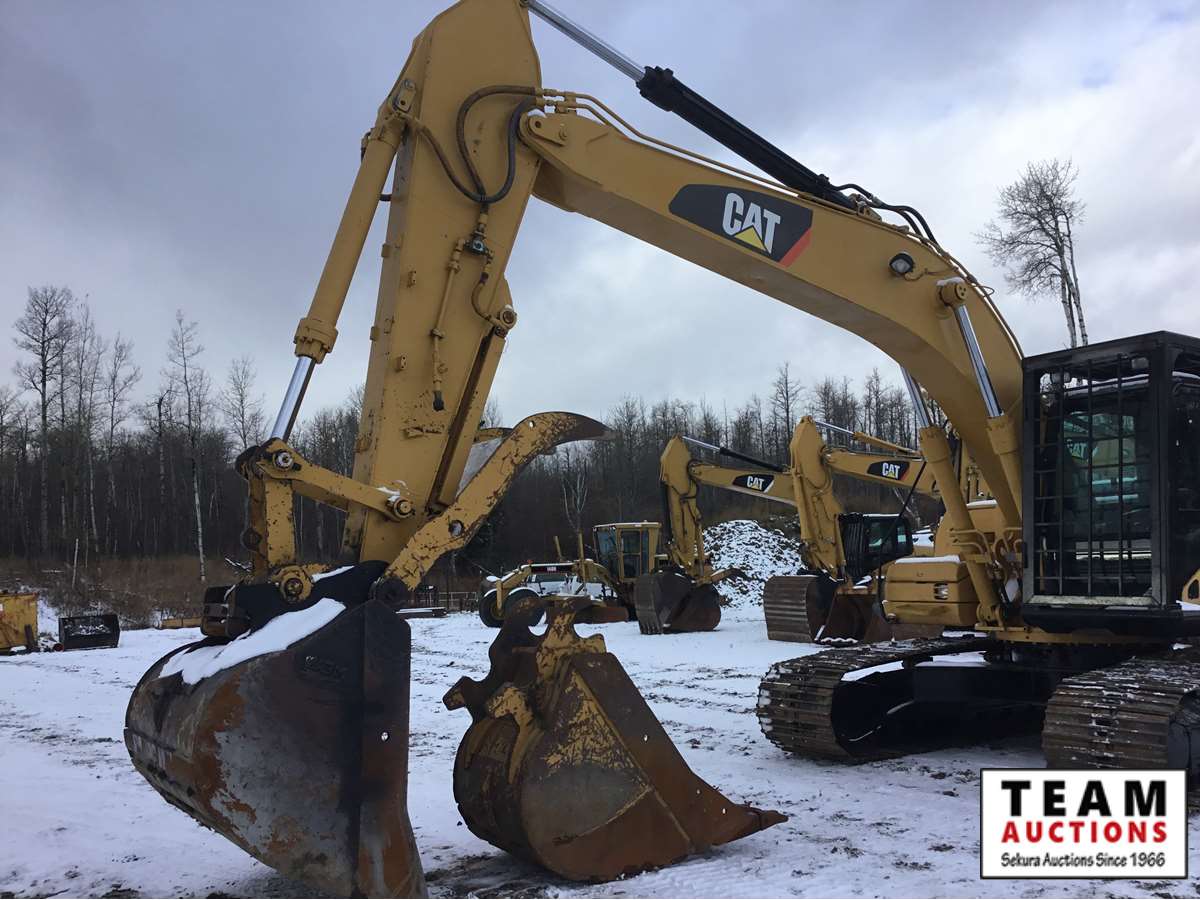 hydraulic thumb, with (2) digging buckets, full ROPS cab protection, cat walks, 3rd valve, pre emmissons Cat C7 engine, only 9,717 hours