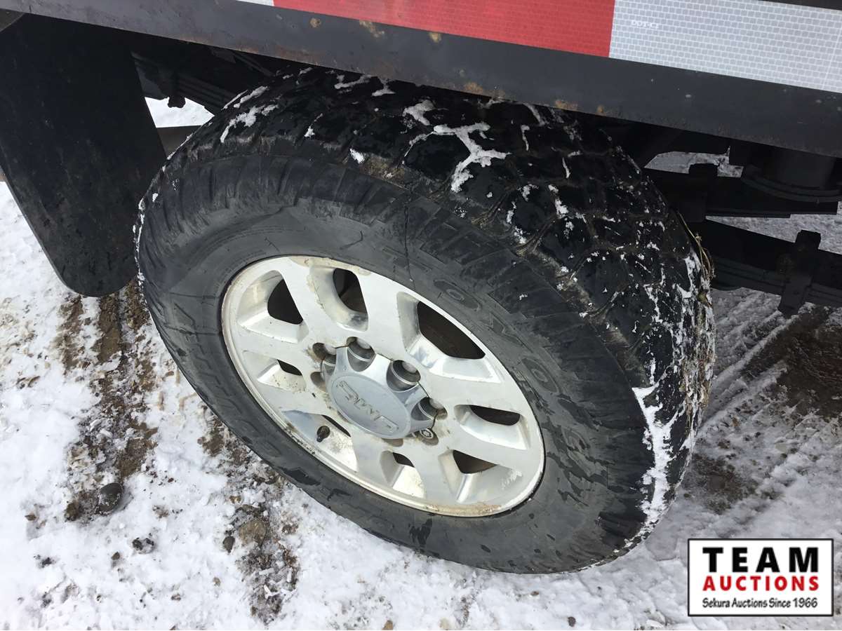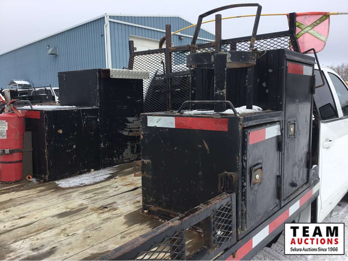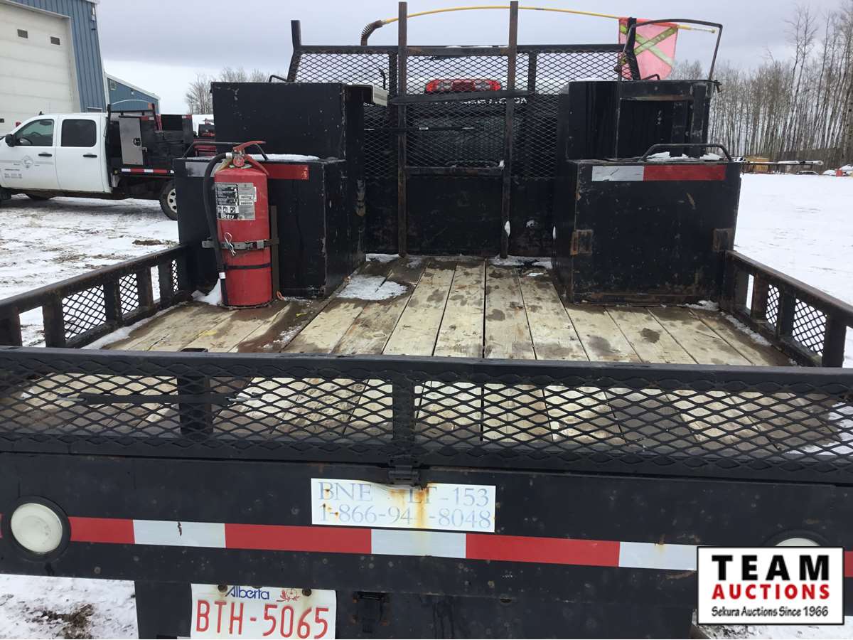 V8 gas engine, auto transmission, deck with tool boxes with some trays, trailer tow package, rear single wheels, only 111,030 kms, Alberta registered