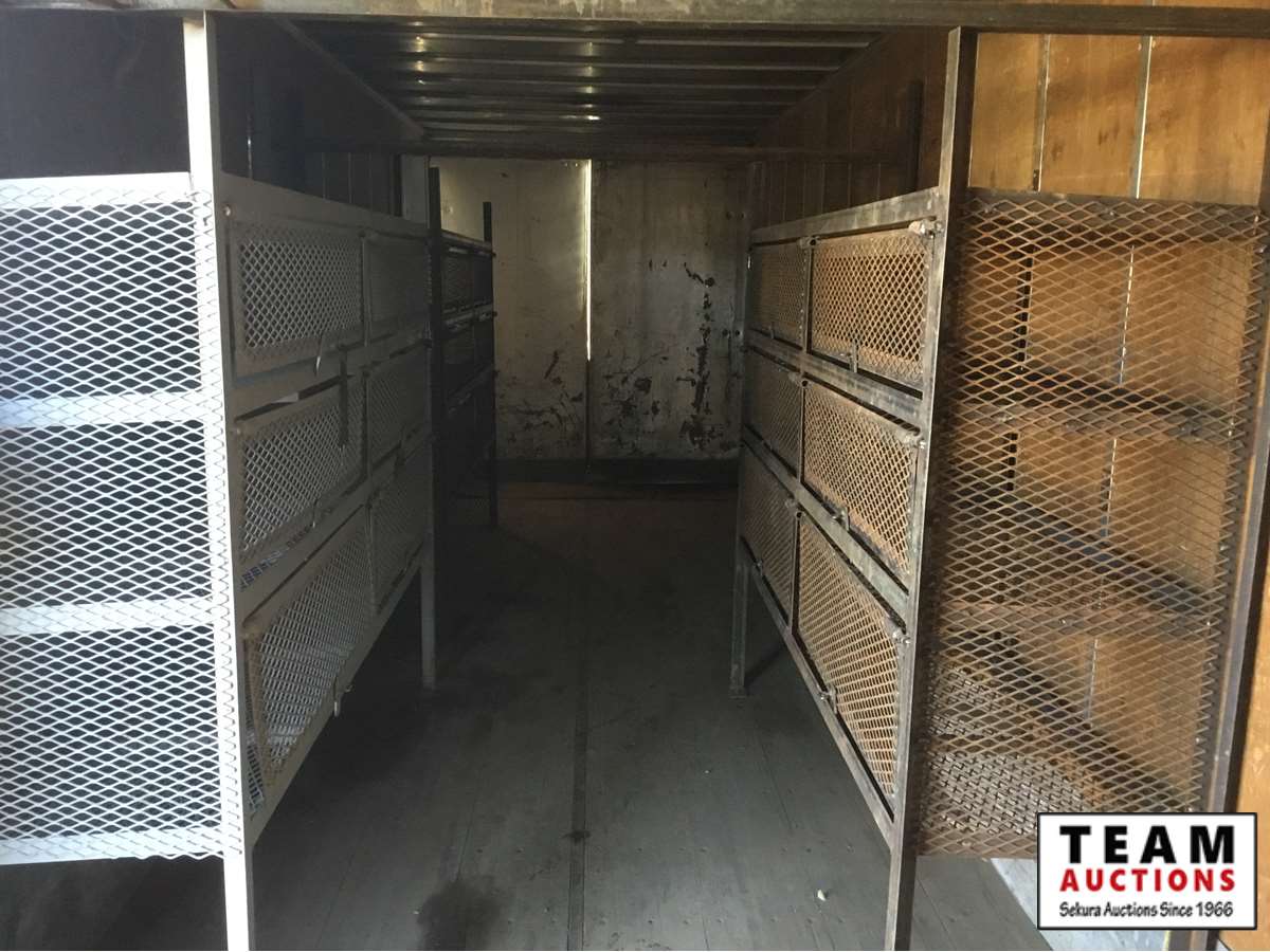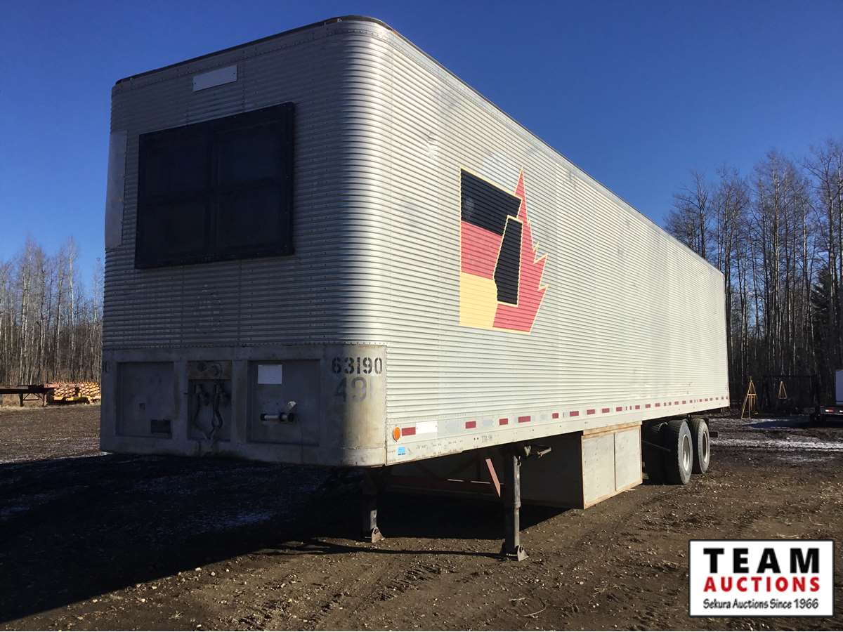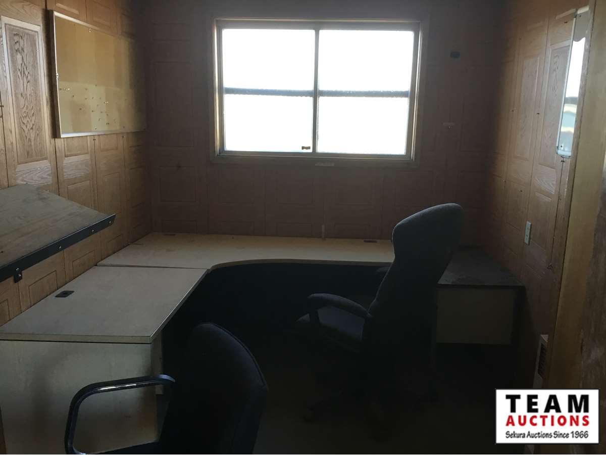 front office , rear storage, parts bins, side and rear doors, stairs, office furniture, spring ride, good tires, Alberta registered, no current CVIP