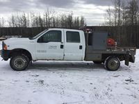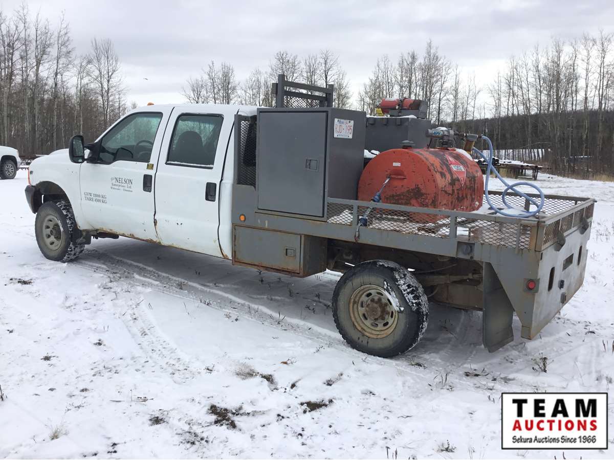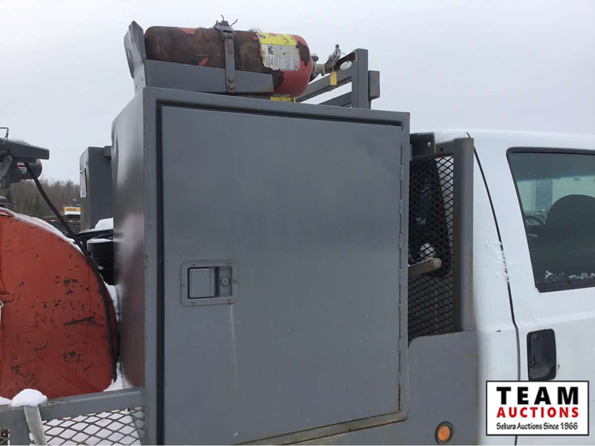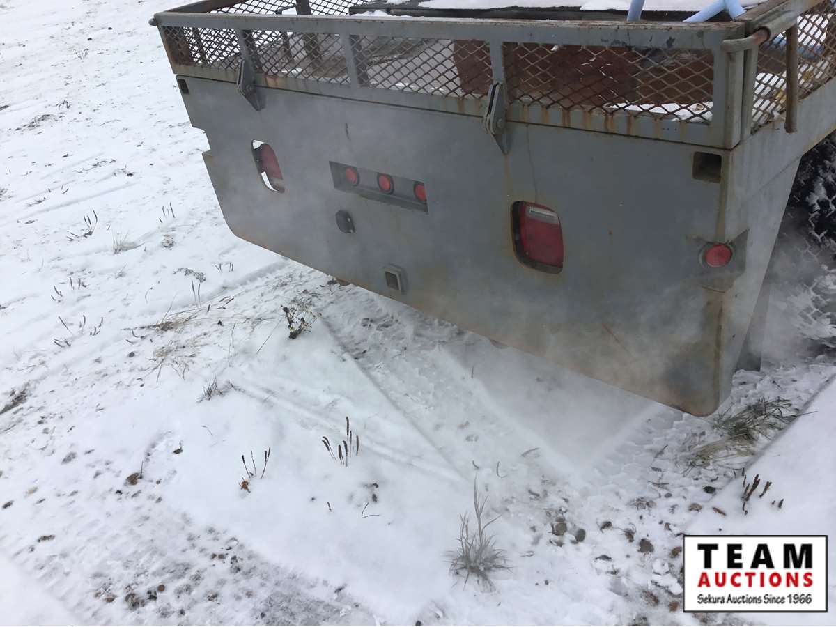 V8 gas engine, auto transmission, deck with tool boxes, trailer tow package, rear single wheels, Alberta registered