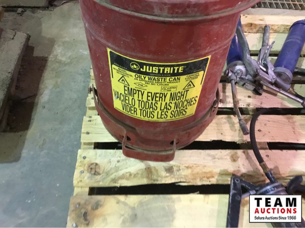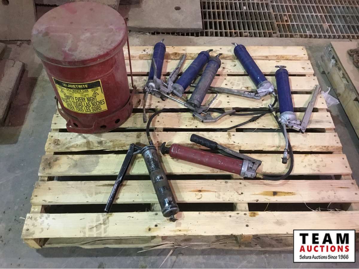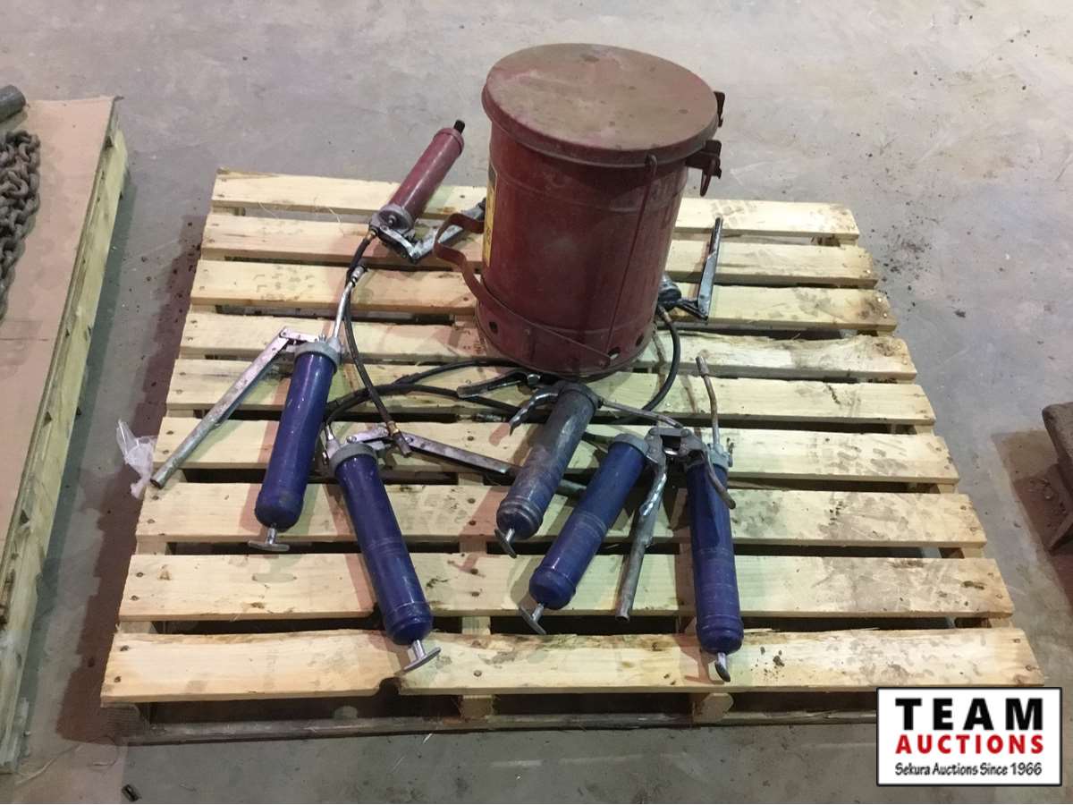 503 Pallet of Grease Guns & Waste Can