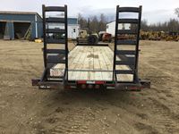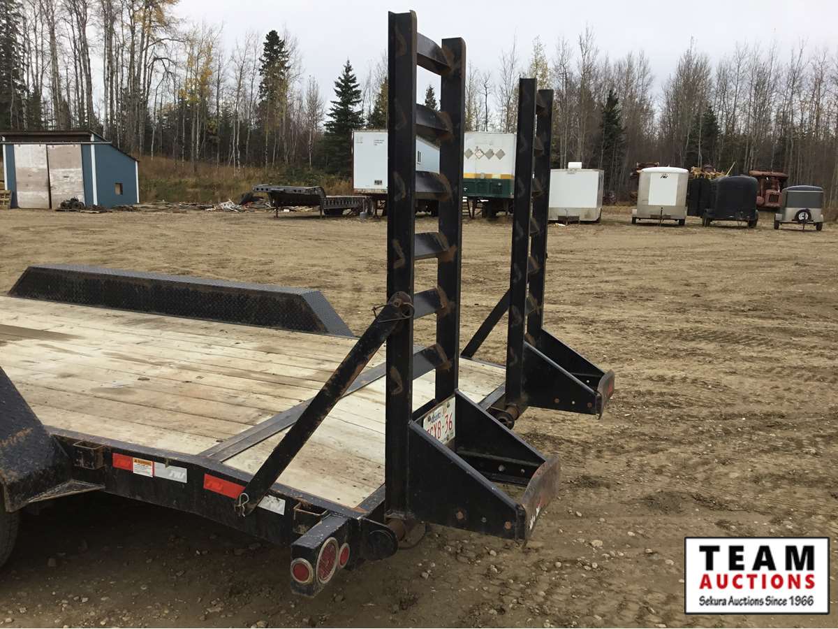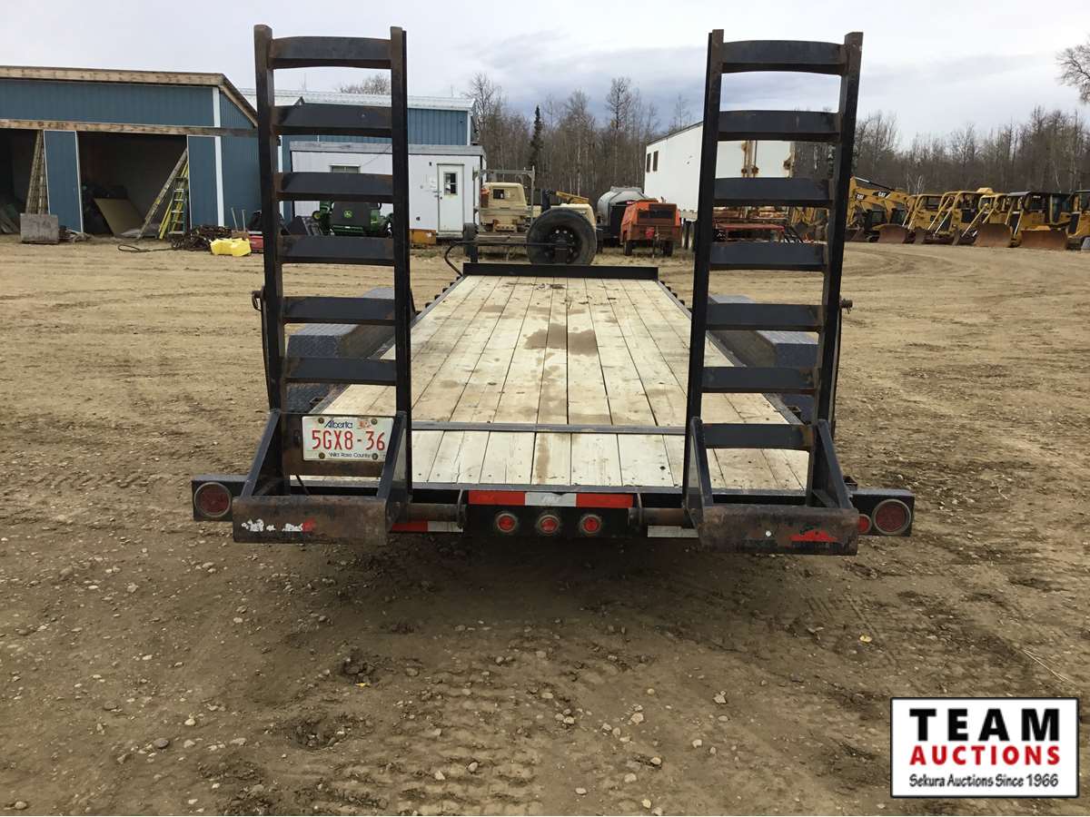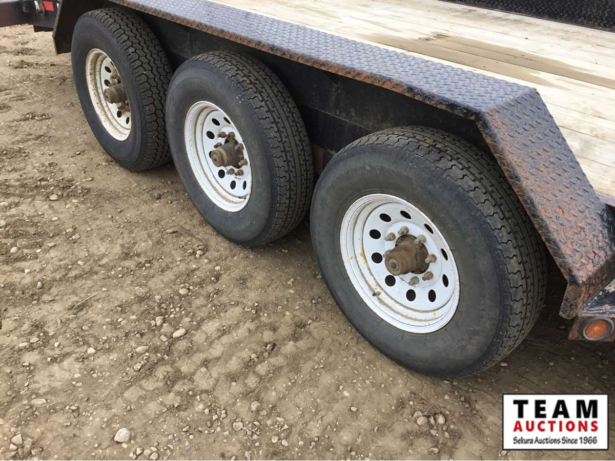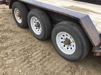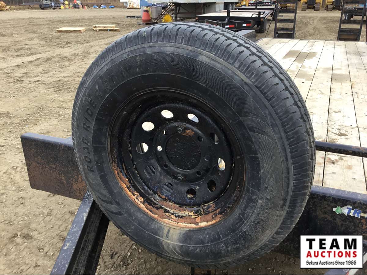 7000 lb axles, 16" rubber, spare tire, stake pockets, last 2' tapered with spring loaded ramps, Alberta registered, current safety