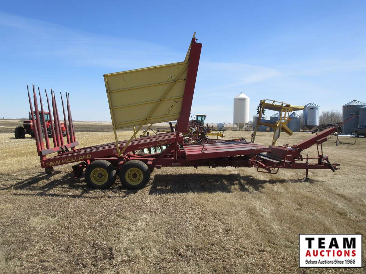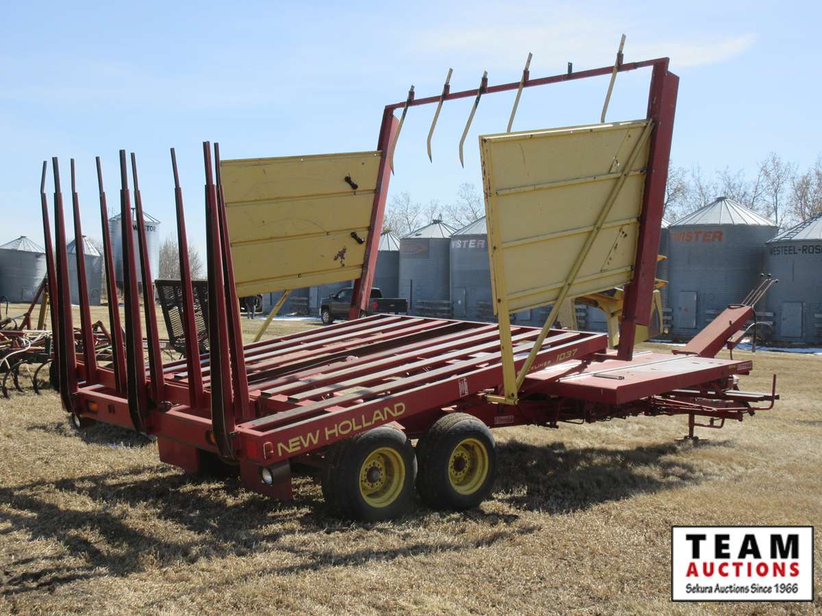 91 New Holland 1037 Pull Type Square Bale Wagon