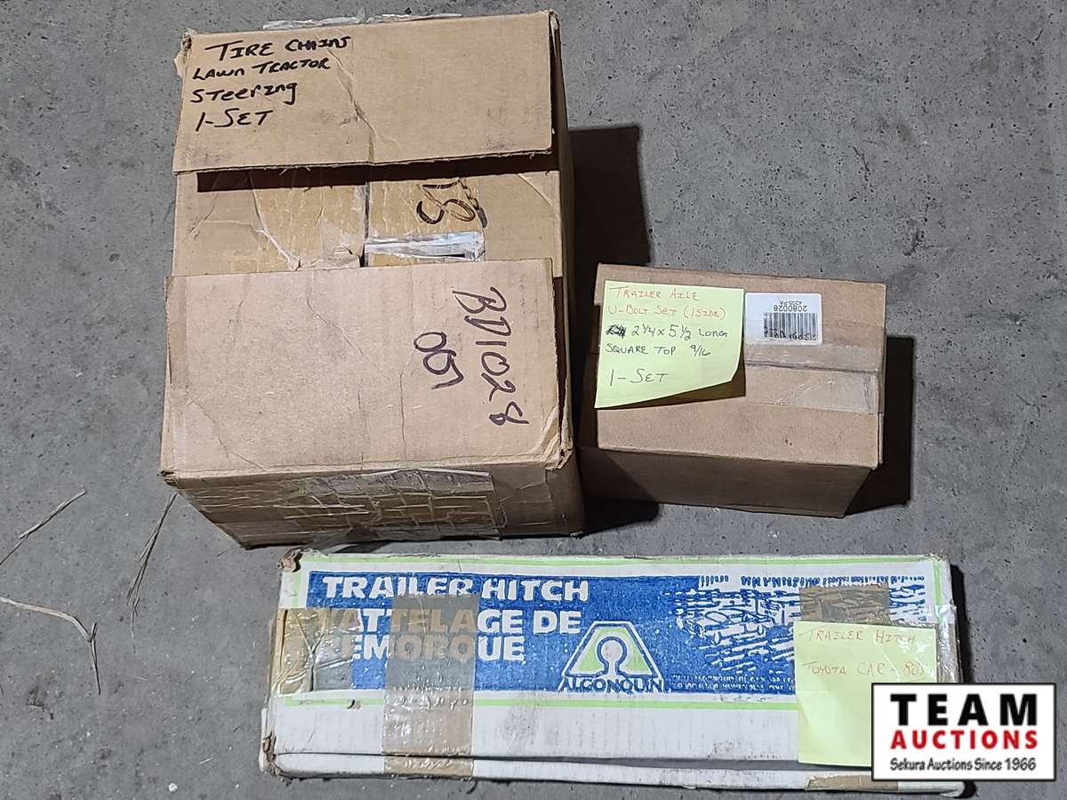 1135 Box of Lawn Tractor Tire Chains, Trailer Axle U-Bolt Set, Car Trailer Hitch