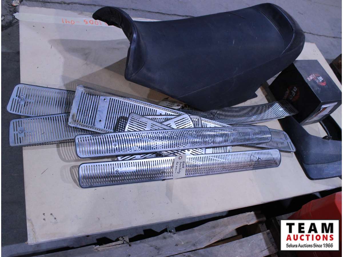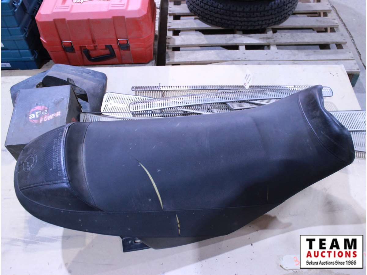 BRP snowmobile seat w/rip, 2008 Ford grill guard, 2008 Chev grill guard, Chev mud guards, misc.