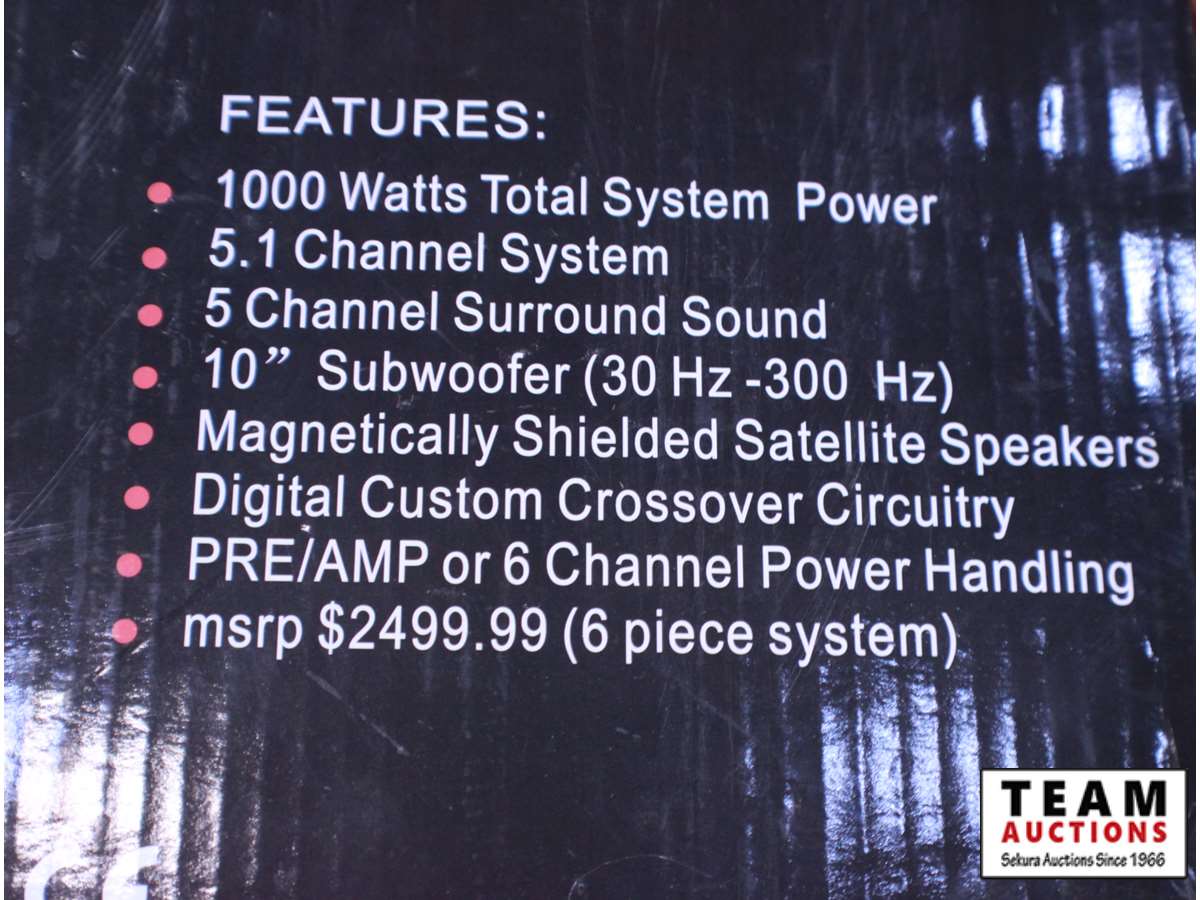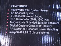 1000W total system power, 5.1 surround sound, 10" subwoofer