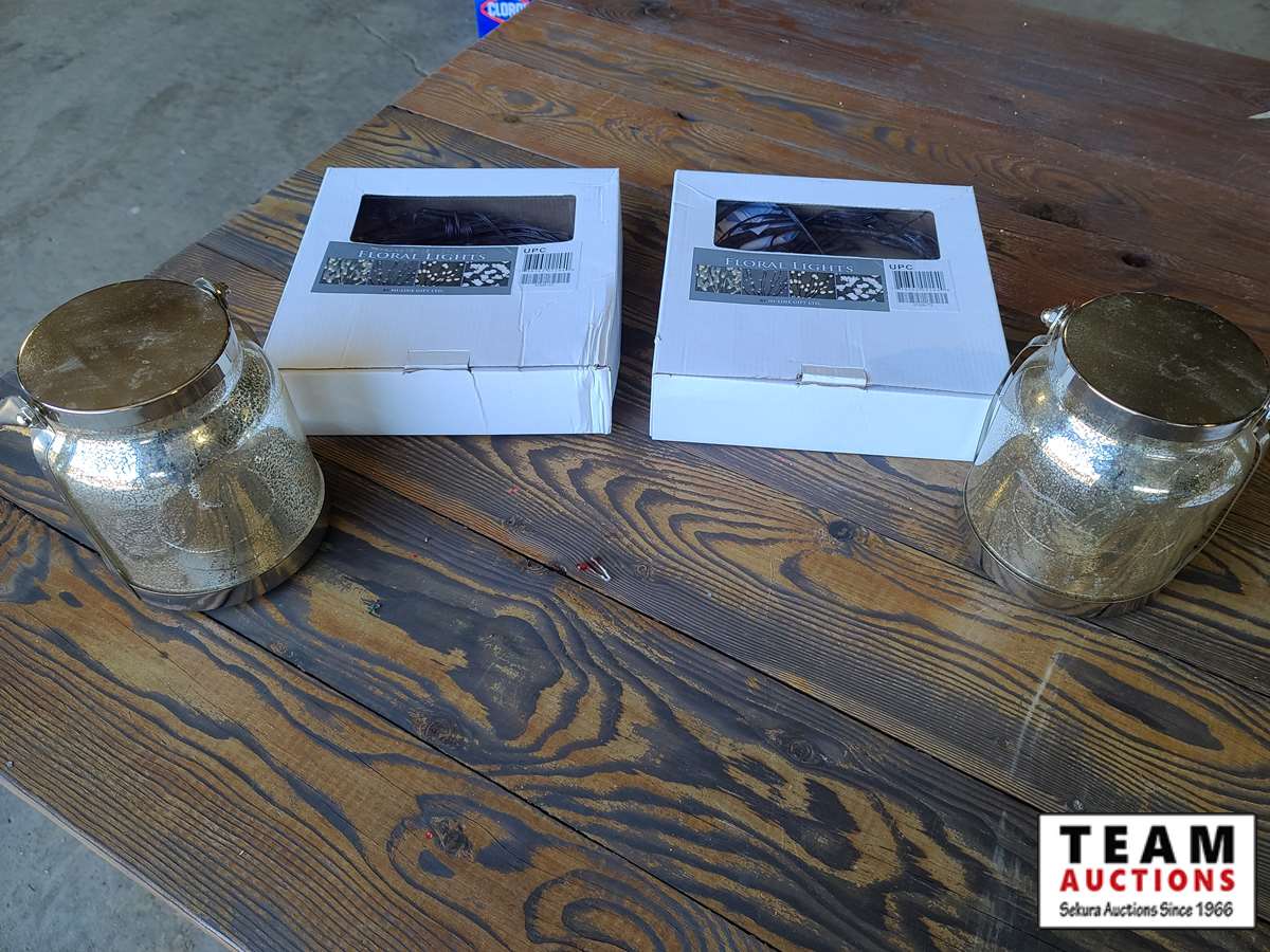 1430 (2) Gold Lanterns & (2) Floral Lights