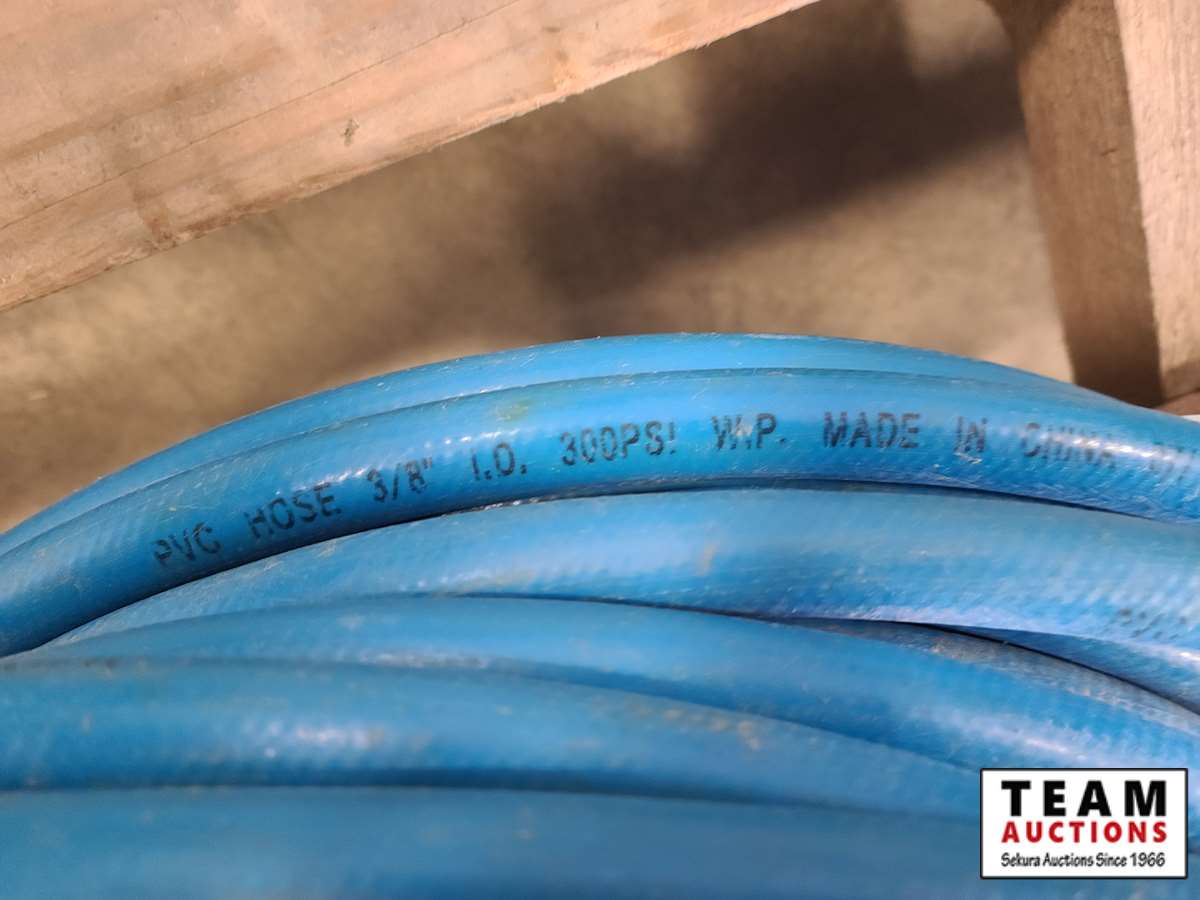 100' x 3/8" sir hose, bag of misc. ag parts, assorted belts and retractable air hose reel
