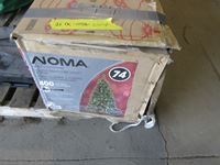 Christmas tree, open sign, printer, bag of small brooms