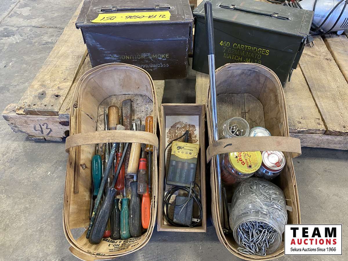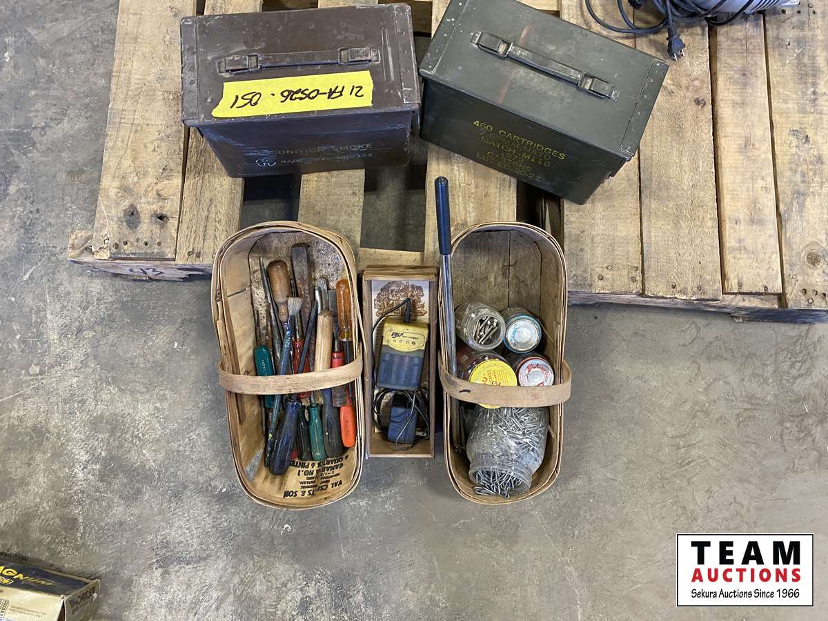 1873 Ammo Tins, Wooden Baskets